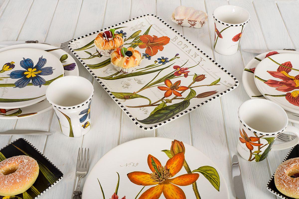 Блюдо, дизайн которого был разработан современной художницей Сью Шлабах, в сочетании с другими предметами коллекции «Цветочная рапсодия» смотрится как фрагмент цветочного сада на столе.