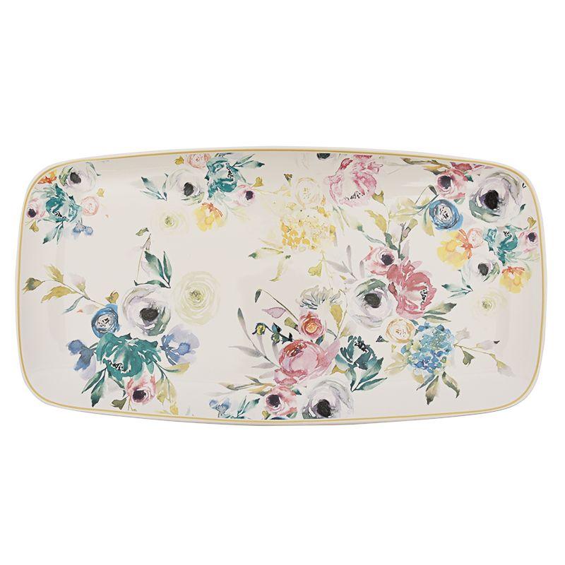 Блюдо "В раю" — это атрибут праздника, будь то торжественная сервировка или повседневный семейный обед. Цветочные лепестки на керамической поверхности образуют рисунок в акварельном стиле с лёгким влажным размытием. Светлая посуда с деликатным, но выразительным дизайном прекрасно дополнит изысканную классическую сервировку, а также уютные композиции в стиле прованс и шебби-шик. Многоцветная палитра рисунка позволяет комбинировать это блюдо с керамикой разных оттенков.