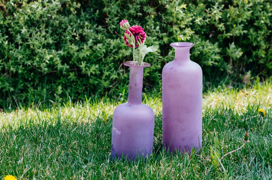 Пурпурная ваза из матового стекла с высоким горлом 26 см