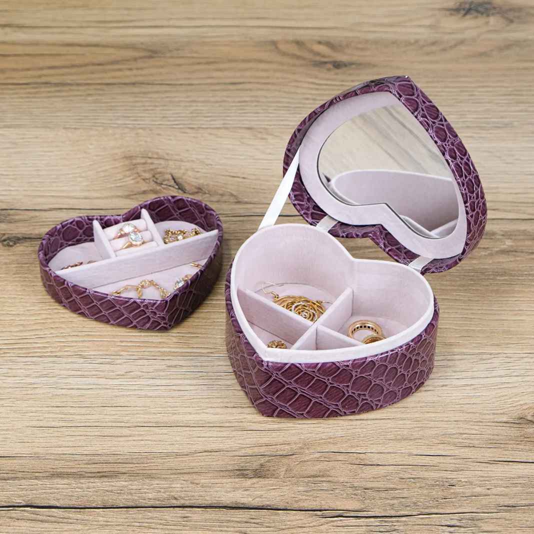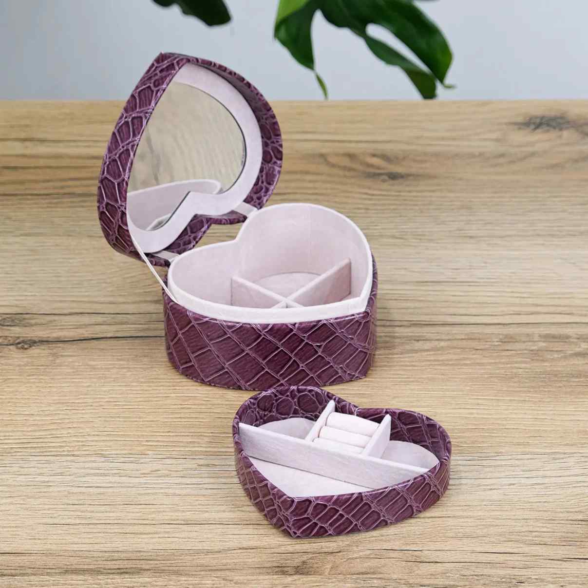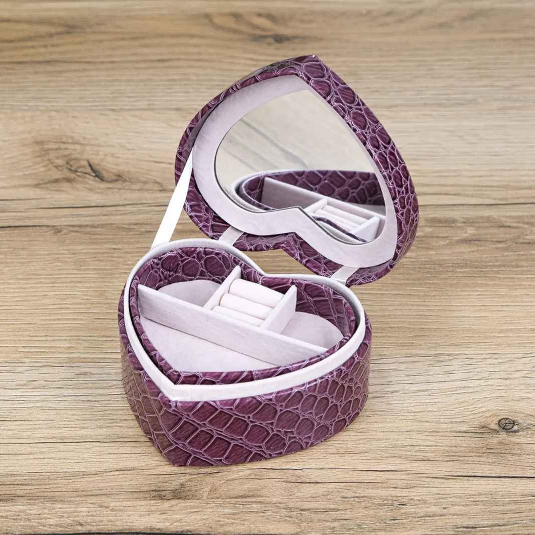 Пурпурова шкатулка для прикрас у формі серця з екошкіри Amoria