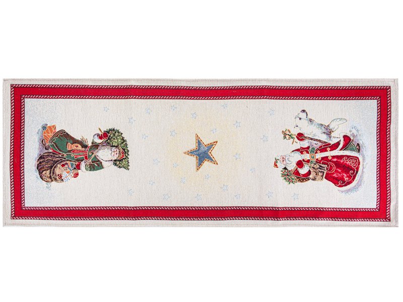 Раннер гобеленовый Snowing станет стильным акцентом на вашем праздничном столе. Его изысканный дизайн с изображением Деда Мороза и рождественских символов наполняет интерьер атмосферой зимнего торжества. Красная окантовка и аккуратные узоры создают завершенный образ, который прекрасно сочетается с новогодней сервировкой.