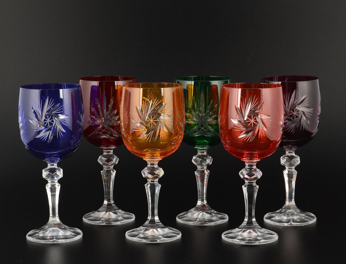 Разноцветные хрустальные фужеры для вина Мельница Богемия 6 шт/ 220 мл