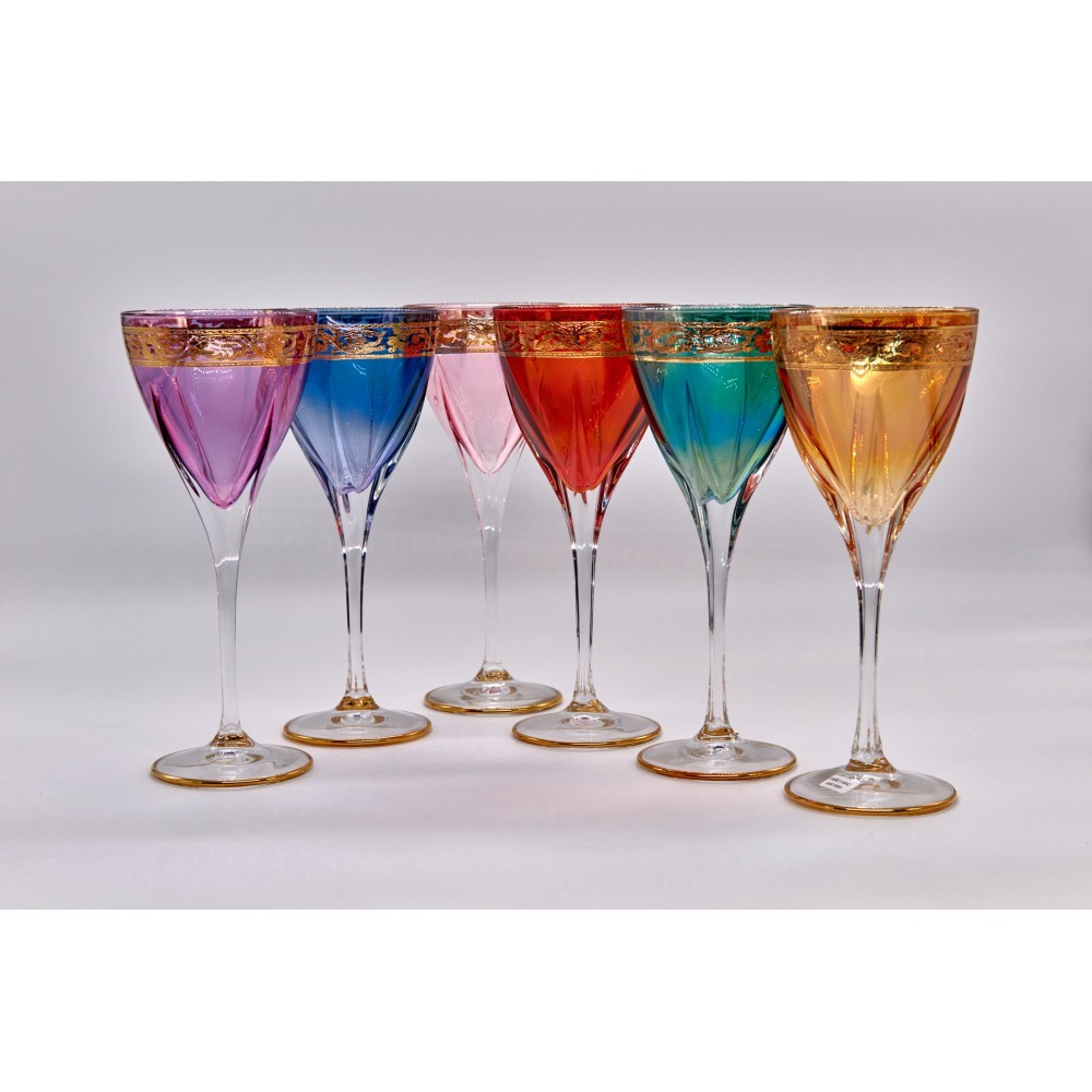 Кожен келих — наче коштовний камінь, що перетворює будь-яке застілля на вишукане свято. Позолочений обідок та розкішне гравіювання роблять їх окрасою столу, а яскраві кольори наповнюють атмосферу радістю та енергією. Ідеальний вибір для тих, хто бажає додати яскравих барв та елегантності до особливих моментів!