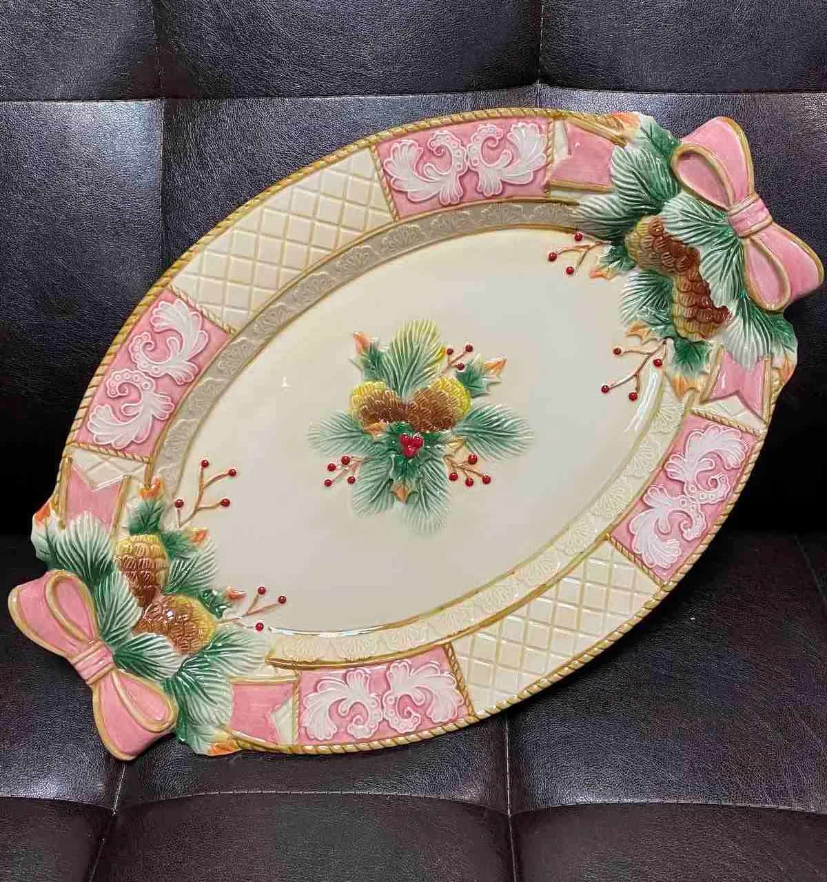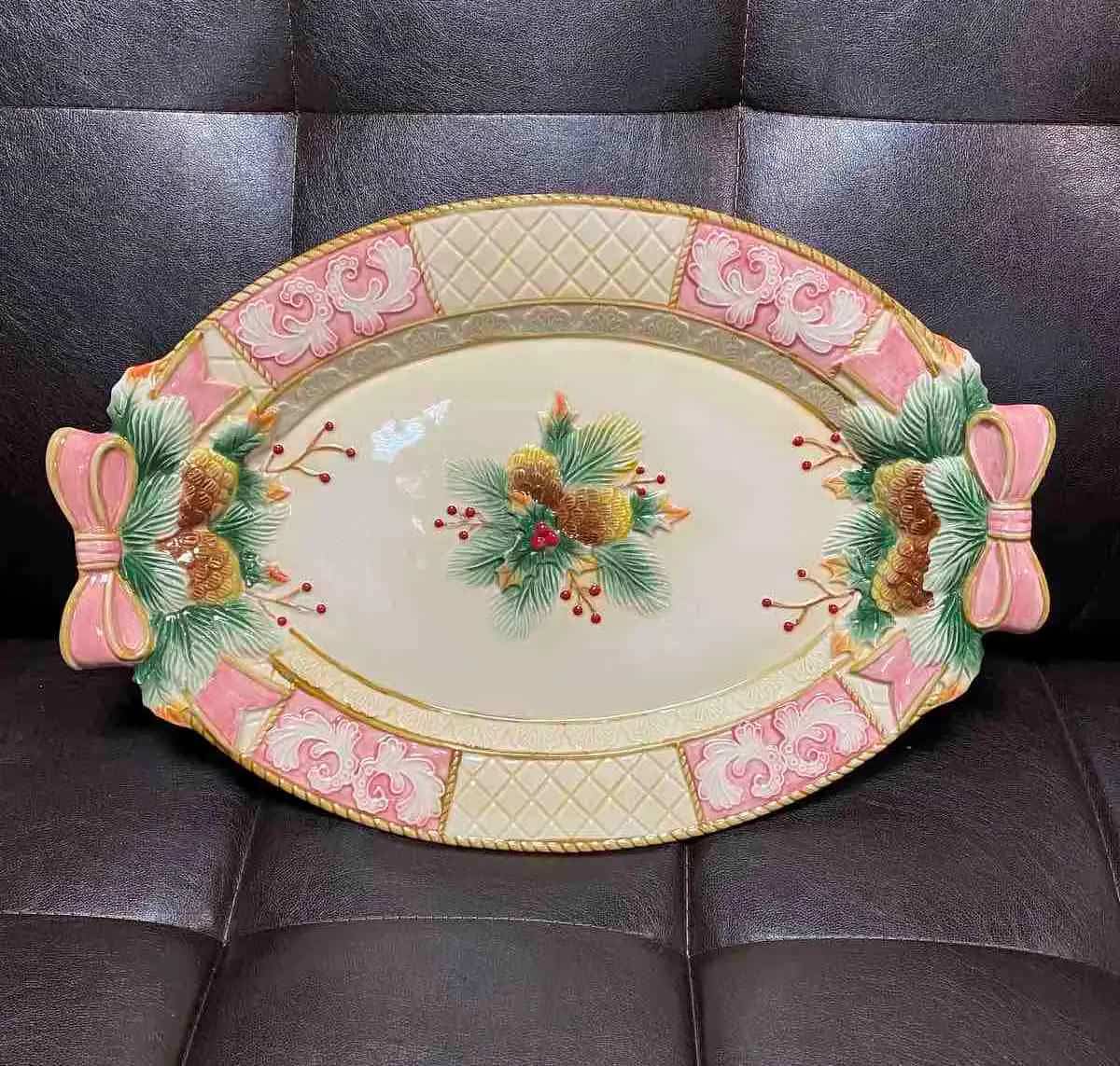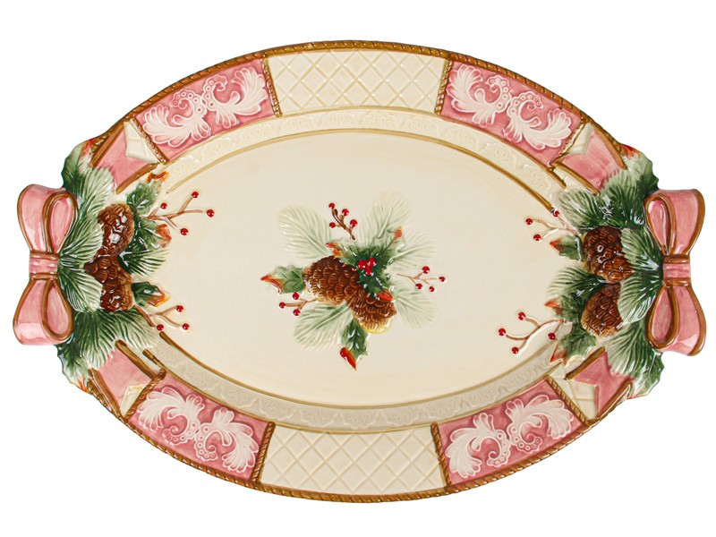 Рождественская тарелка сервировочная овальная керамика "Праздник" 43х30 см