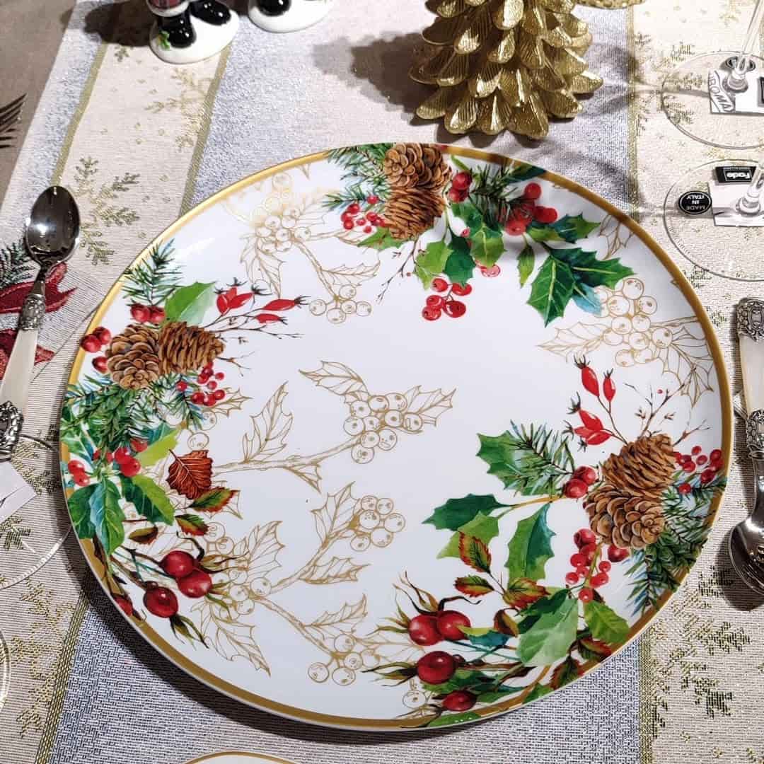 Это рождественское круглое блюдо Faith Maison украшено ярким зимним орнаментом с хвойными ветками, красными ягодами и сосновыми шишками. Богатый золотой узор добавляет праздничности и делает изделие акцентом любой сервировки. Диаметр блюда составляет 30 см, что позволяет использовать его как для подачи закусок, так и для украшения стола. Изделие выполнено из прочного фарфора, который устойчив к ежедневному использованию. Такое блюдо создаёт атмосферу уюта и праздника благодаря насыщенной палитре и детализированному рисунку. Оно станет отличным выбором для новогоднего стола или подарка.