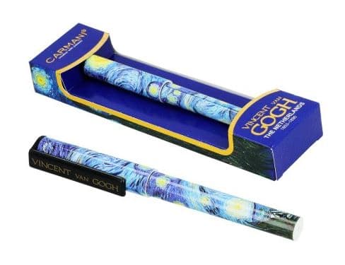 Шариковая ручка со сменным стержнем черного цвета украшенная репродукцией "Звездная ночь", полотно известного австрийского художника и основоположника модерна в австрийской живописи Ван Гог.