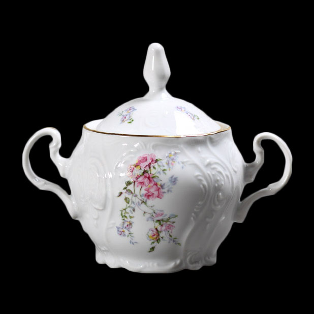 Сахарница фарфоровая белая с цветным рисунком Thun Bernadotte Дикая Роза с золотым кантом 300 мл