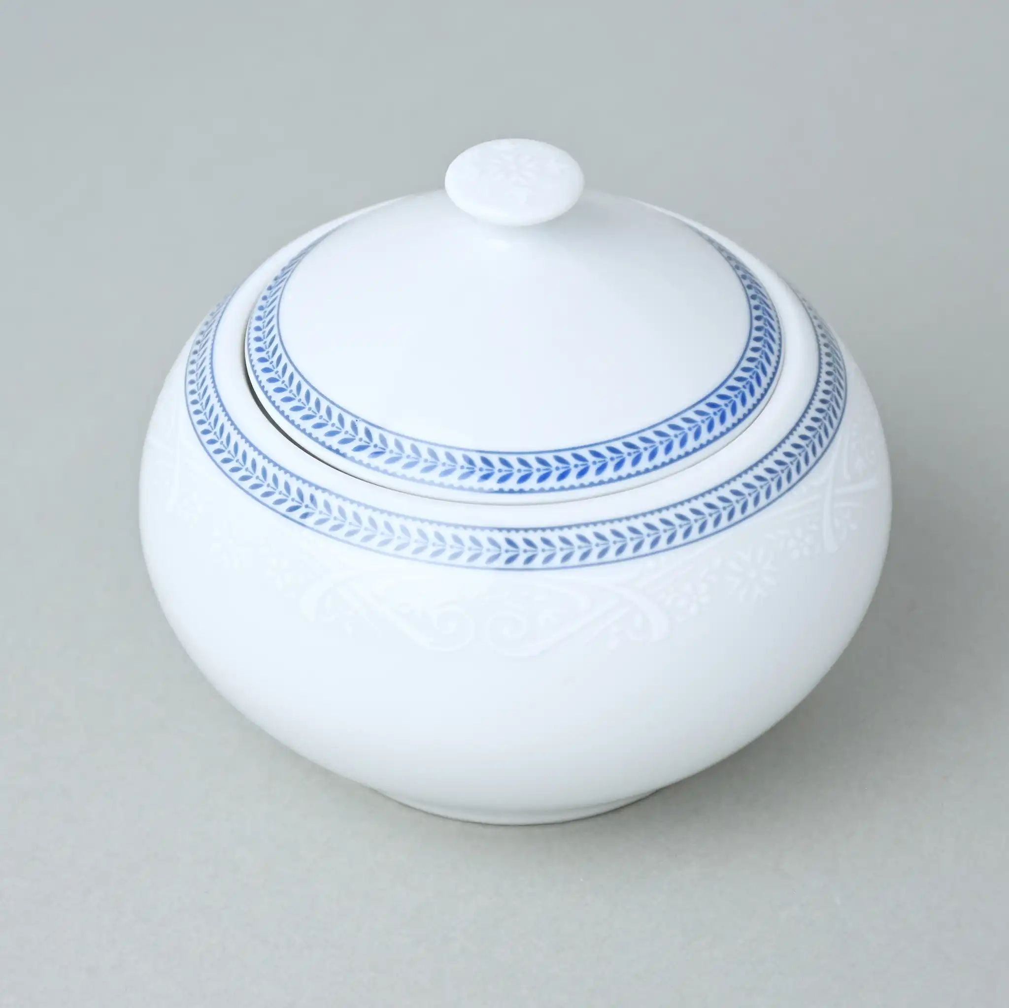 Сахарница фарфоровая белая с голубым кантом Тhun Opal Голубые Пластинки 200 мл