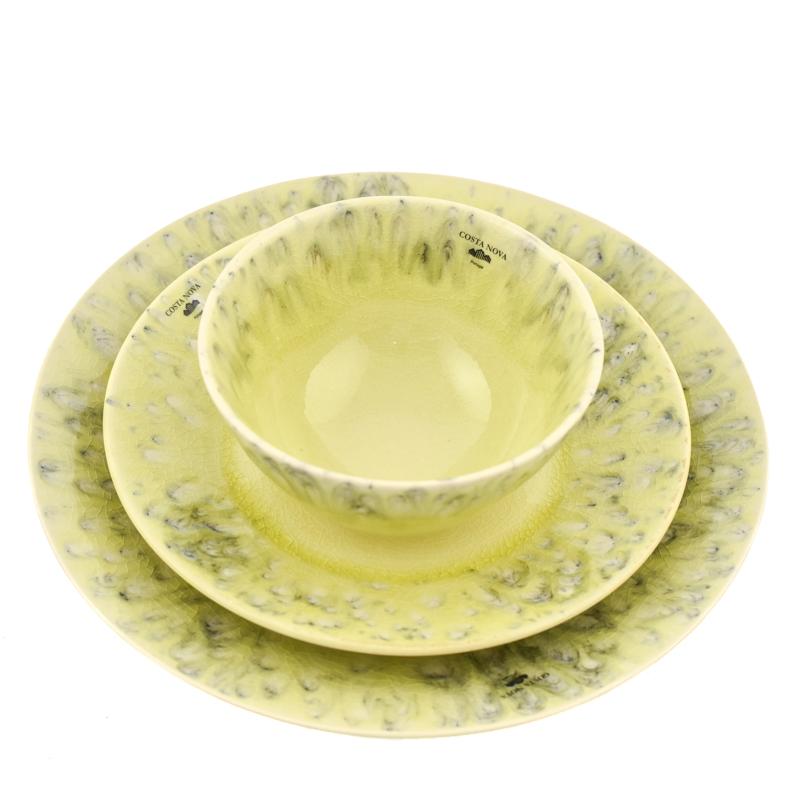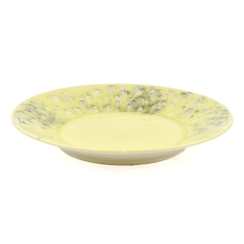 Прочная и тяжелая керамика Madeira выглядит атмосферно и утонченно, благодаря сочетанию в оригинальном дизайне свежей палитры, благородного блеска и эффекта размытой акварели на широких бортиках. В росписи этого стильного изделия использован трендовый оттенок лайм с нюансами серой гаммы.