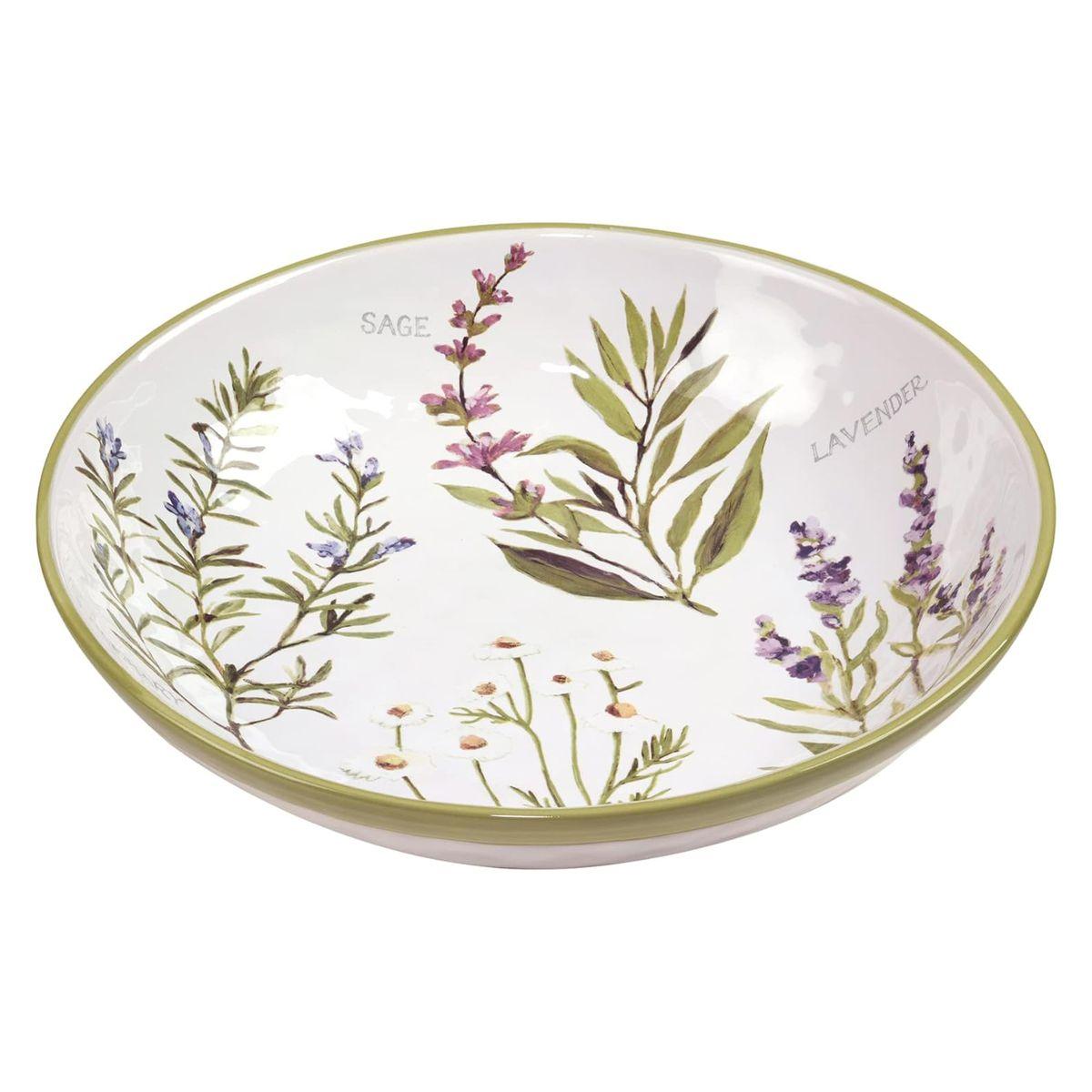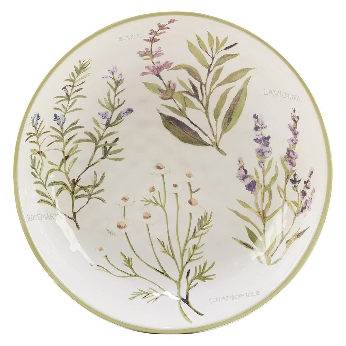 Блюдо для фруктов и салата изготовлено из крепкой экологической керамики премиум-класса. Авторский дизайн создан популярной американской художницей Сюзен Уингет. Коллекция посуды "Ароматные Травы" отличается природной красотой и ароматами пряных трав. На заварнике есть изображение всех пряных трав из коллекции, а также надписи, идентифицирующие каждую из них.