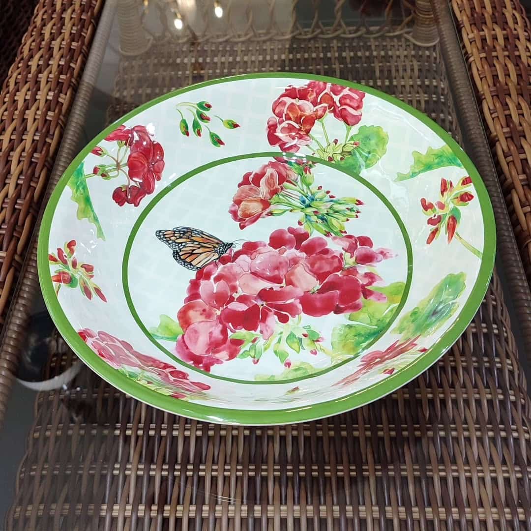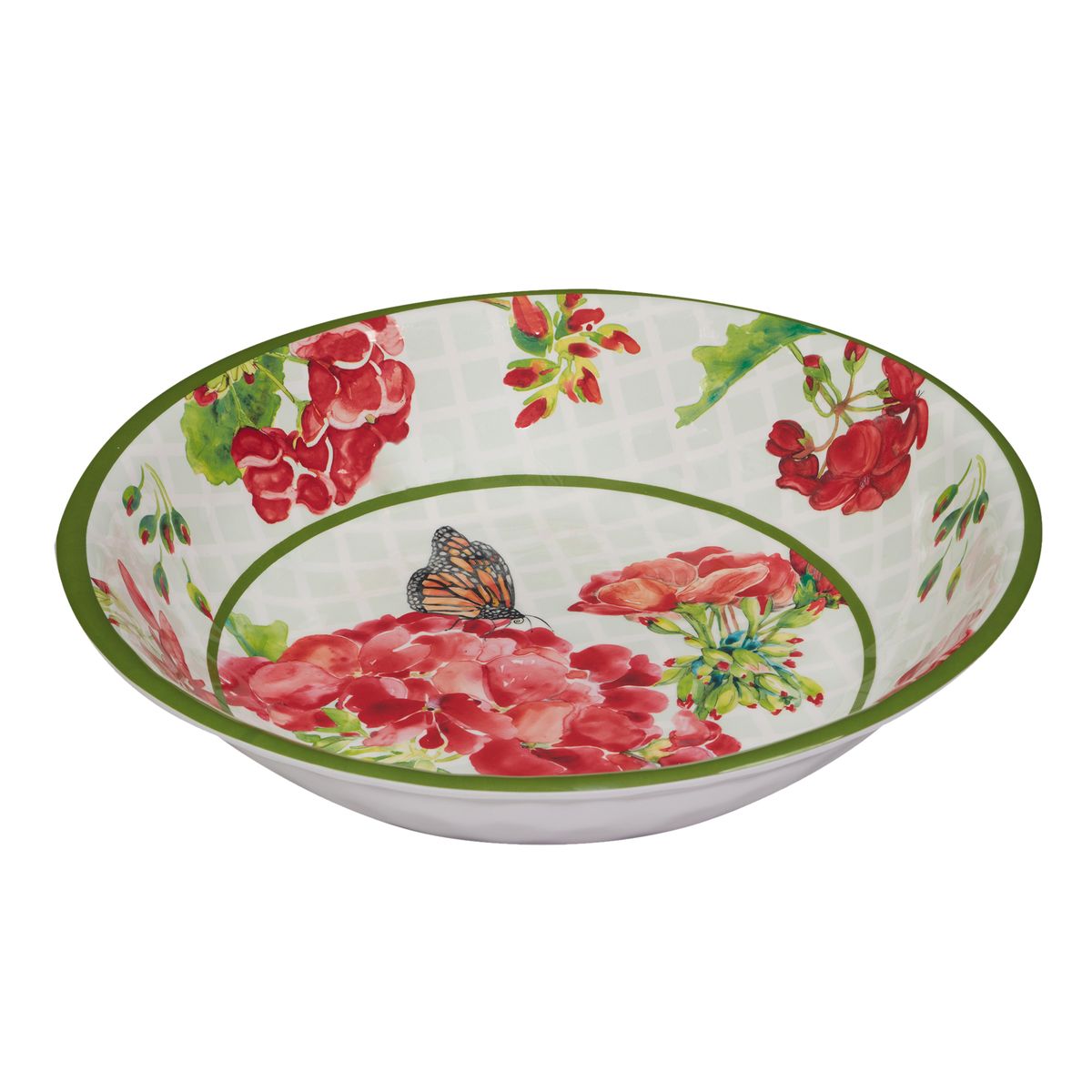 Объёмный салатник с авторским оформлением художницы Шерри Бак Болдуин, которую часто называют мастером природных сюжетов. Для коллекции «Куст герани» американская художница создала серию рисунков, объединённых цветочной тематикой, красно-зелёной гаммой и безупречной акварельной техникой.