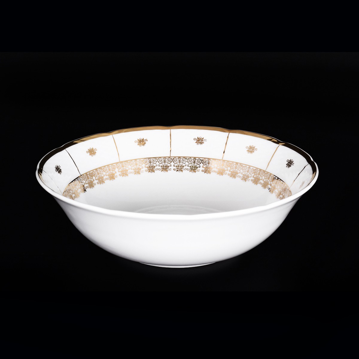 Порцеляна білого кольору з красивим рельєфним малюнком та золотистим обідком створить атмосферу свята. Його міцна структура та стійкість до сколів дозволяє користуватися цим посудом щодня. Порцеляна чеського виробника Thun завжди виглядатиме на Вашому столі елегантно і в той же час ошатно і урочисто. Висока якість продукції Thun досягається багатовіковим досвідом у виробництві порцеляни. Використання найсучасніших технологій дозволяє виробляти вироби різних розмірів та форм.