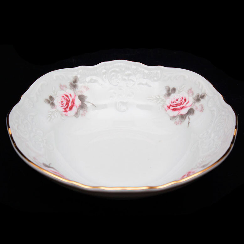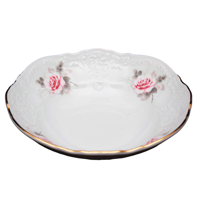 Салатник фарфоровый белый круглый с рисунком Bernadotte "Бледная Роза" 13 см с золотой каймой