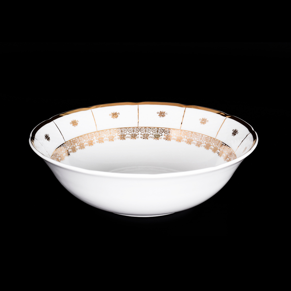 Салатник фарфоровый белый круглый с золотым орнаментом и кантом Thun Menuet 24 см