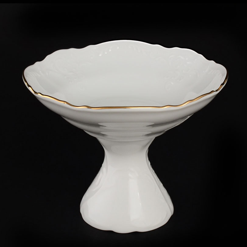 Салатник фарфоровый круглый белый с золотым кантом Bernadotte Обводка Золото 19 см (на ножке)