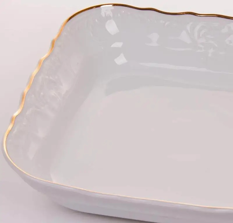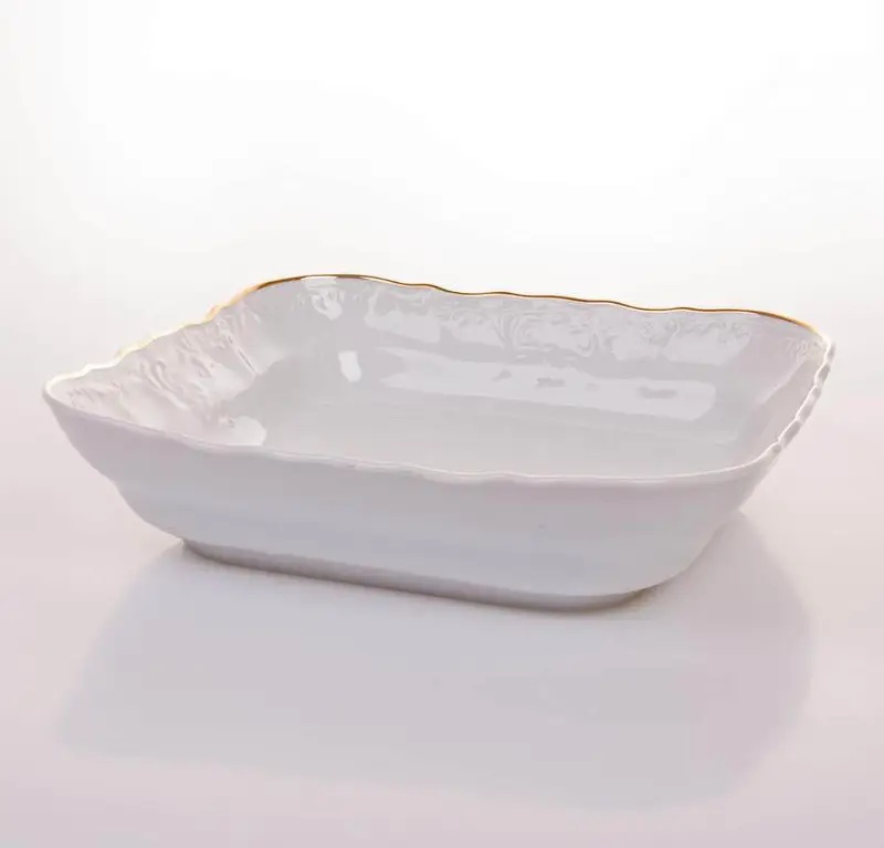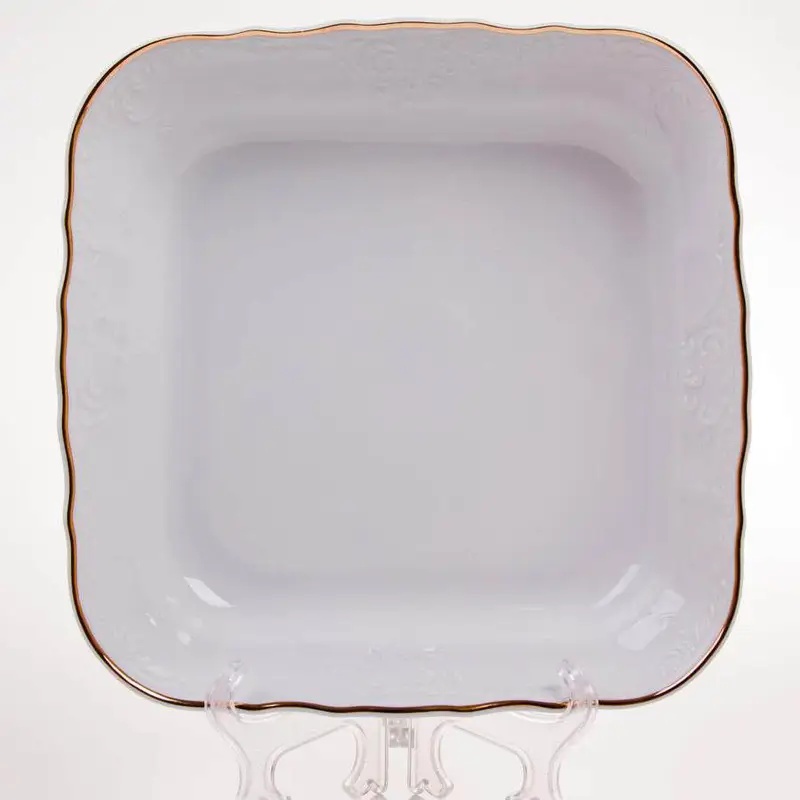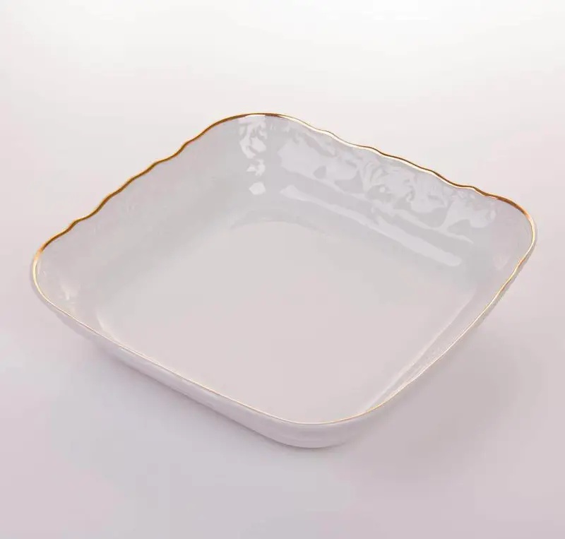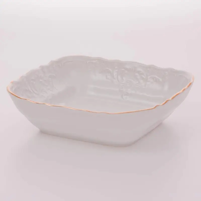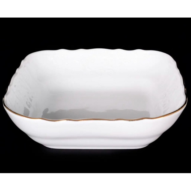 Салатник фарфоровый квадратный белого цвета с золотой обводкой Bernadotte Обводка Золото 25 см