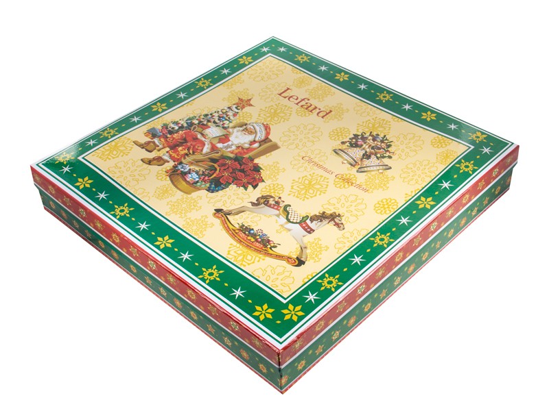 Фарфоровый салатник Christmas Collection диаметром 33 см — это стильный акцент праздничной сервировки, сочетающий изящество формы и богатство рождественского декора. Классический квадратный силуэт с плавно изогнутыми краями украшен узором из снежинок и золотисто-красных звёзд, а в центре расположена изящная лошадка-качалка — символ домашнего тепла, радости и воспоминаний детства. Такая композиция создаёт атмосферу семейного уюта и подчеркивает праздничное настроение.