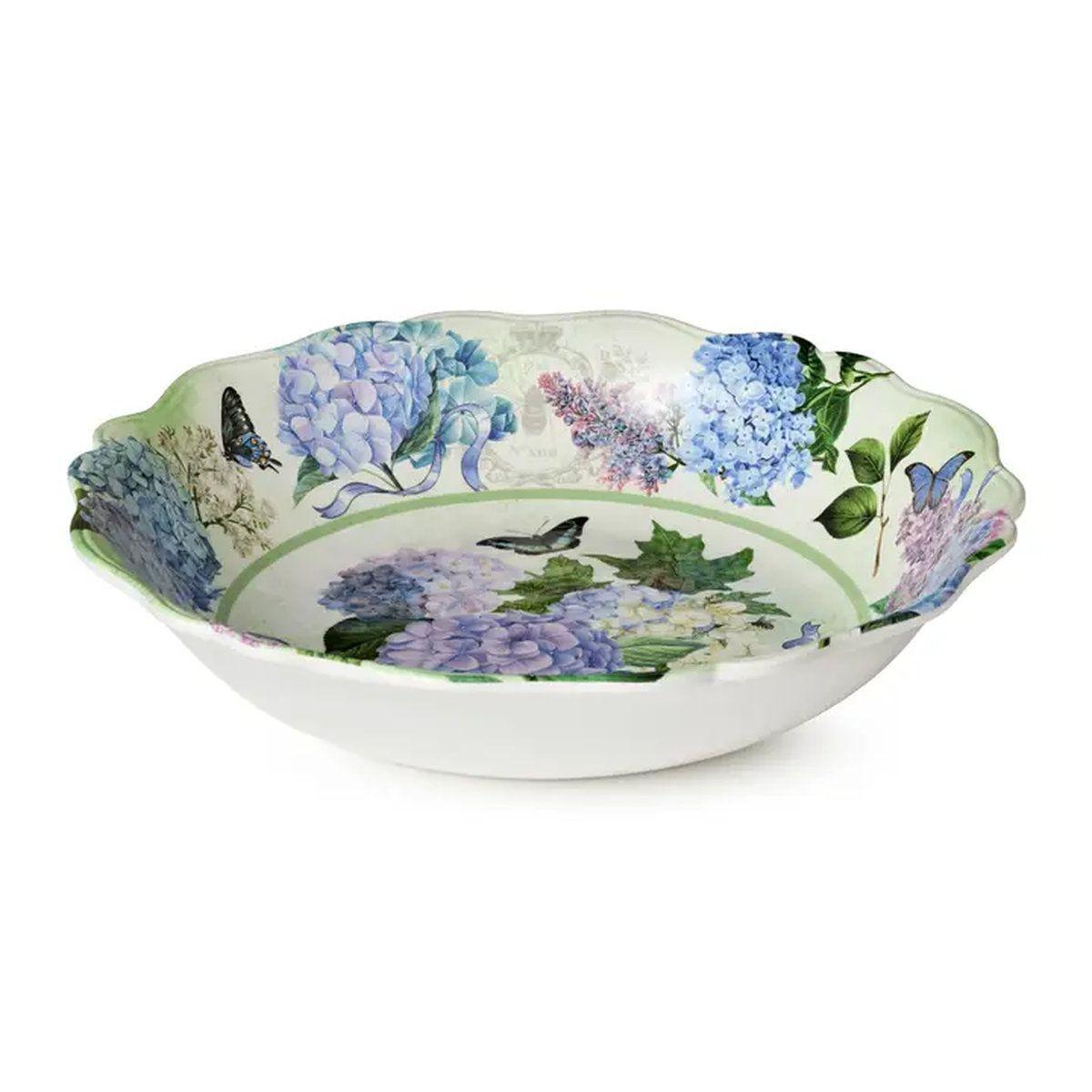 Великий меламіновий салатник «Букет гортензій» виготовлений з ударостійкого матеріалу, що не містить бісфенолу та є абсолютно безпечним для здоров’я. Його яскравий квітковий візерунок із великими гортензіями перетворює будь-яку сервіровку на сонячну та святкову композицію. Легкий, міцний і зручний — він ідеально підходить для великих салатів, фруктів або ефектної подачі на стіл. Салатник можна мити в посудомийній машині при температурі до +70°, що значно спрощує догляд. Насичені кольори та хвиляста форма роблять його стильним акцентом у будь-якому інтер’єрі. Цей виріб створений брендом зі США та виготовлений на заводах Certified International у КНР.