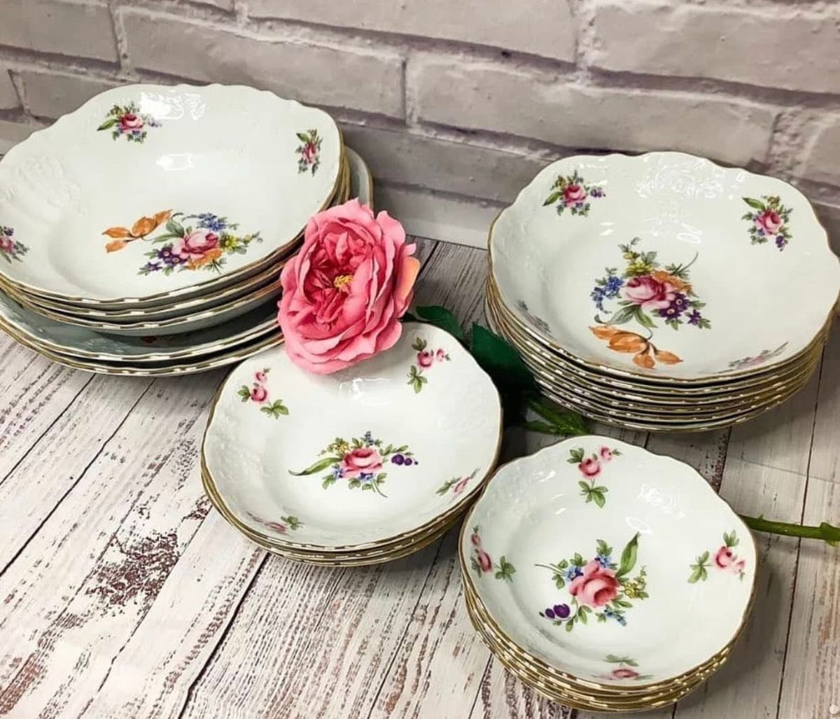 БрендThun Страна производстваЧехия КоллекцияМейсенский букет МатериалФарфор Вид тарелкиТарелка Диаметр посуды25 см