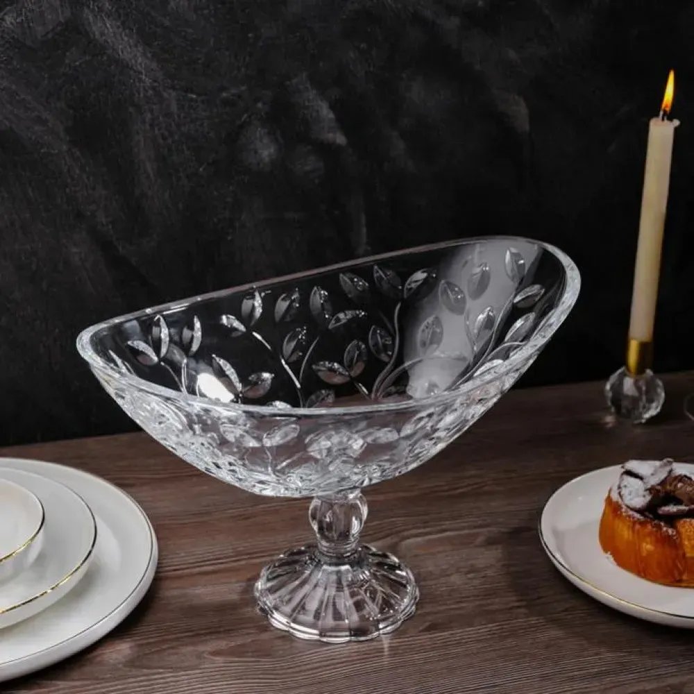 Салатник на ніжці прозорий екокришталь LAURUS