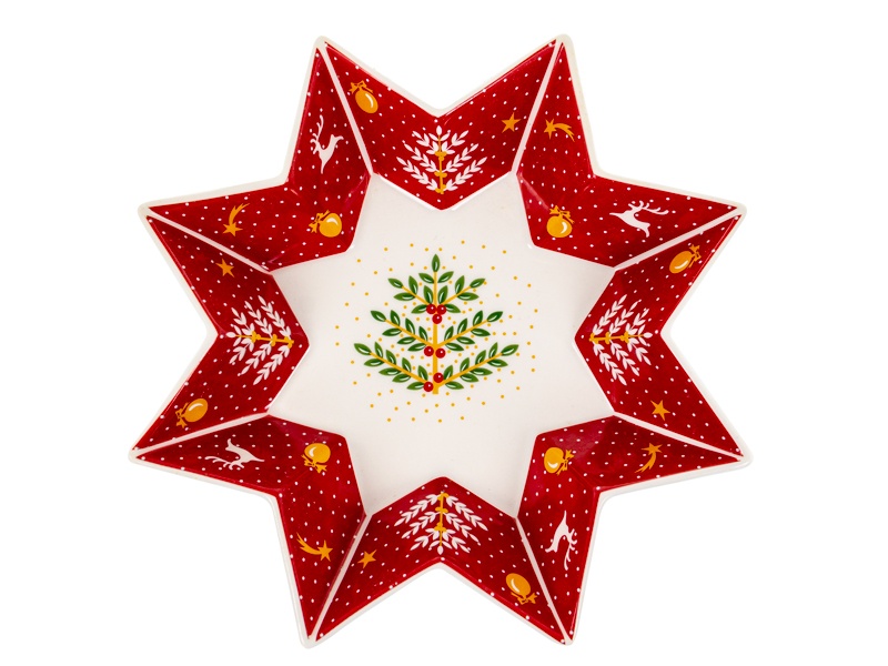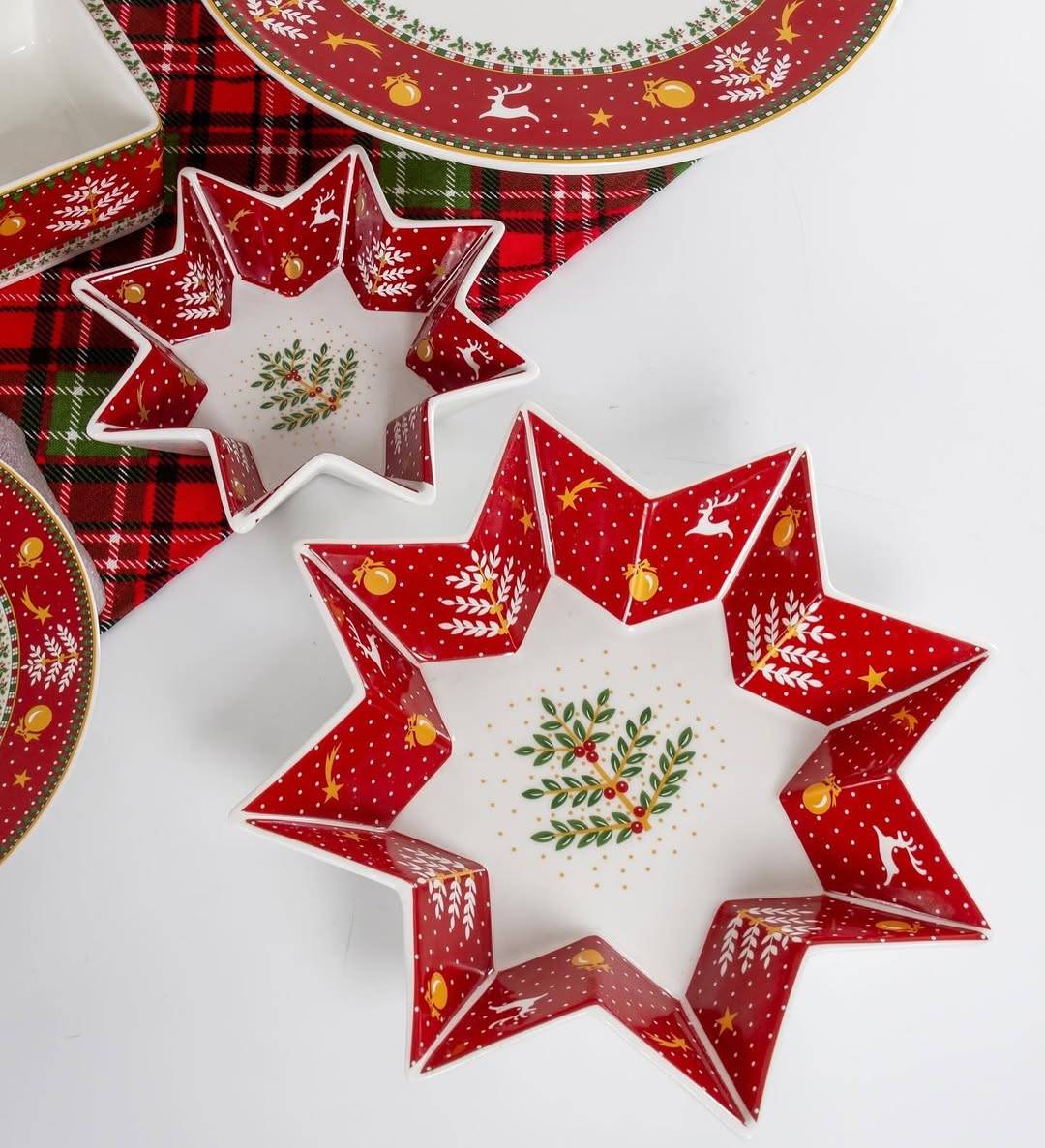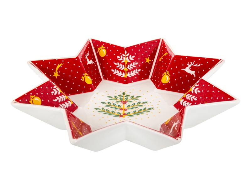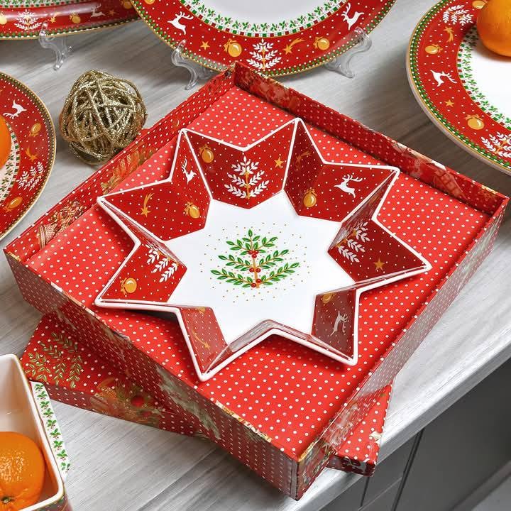 Колекція новорічного фарфорового посуду Снігова Зірка – це ідеальне поєднання елегантності, функціональності та святкового настрою. Кожен предмет колекції оформлений з використанням яскравих новорічних мотивів, які роблять її незамінною для створення різдвяної атмосфери на святковому столі.