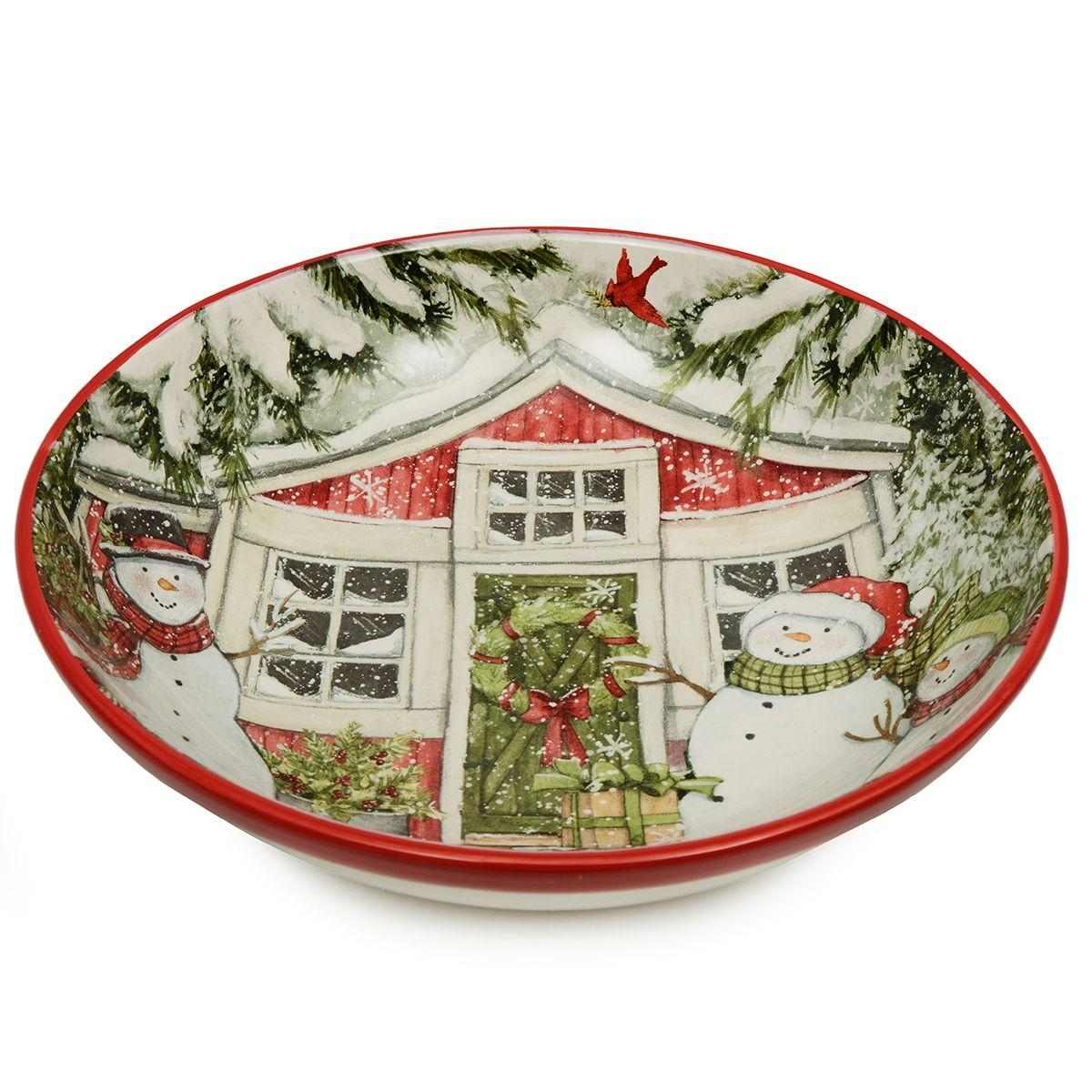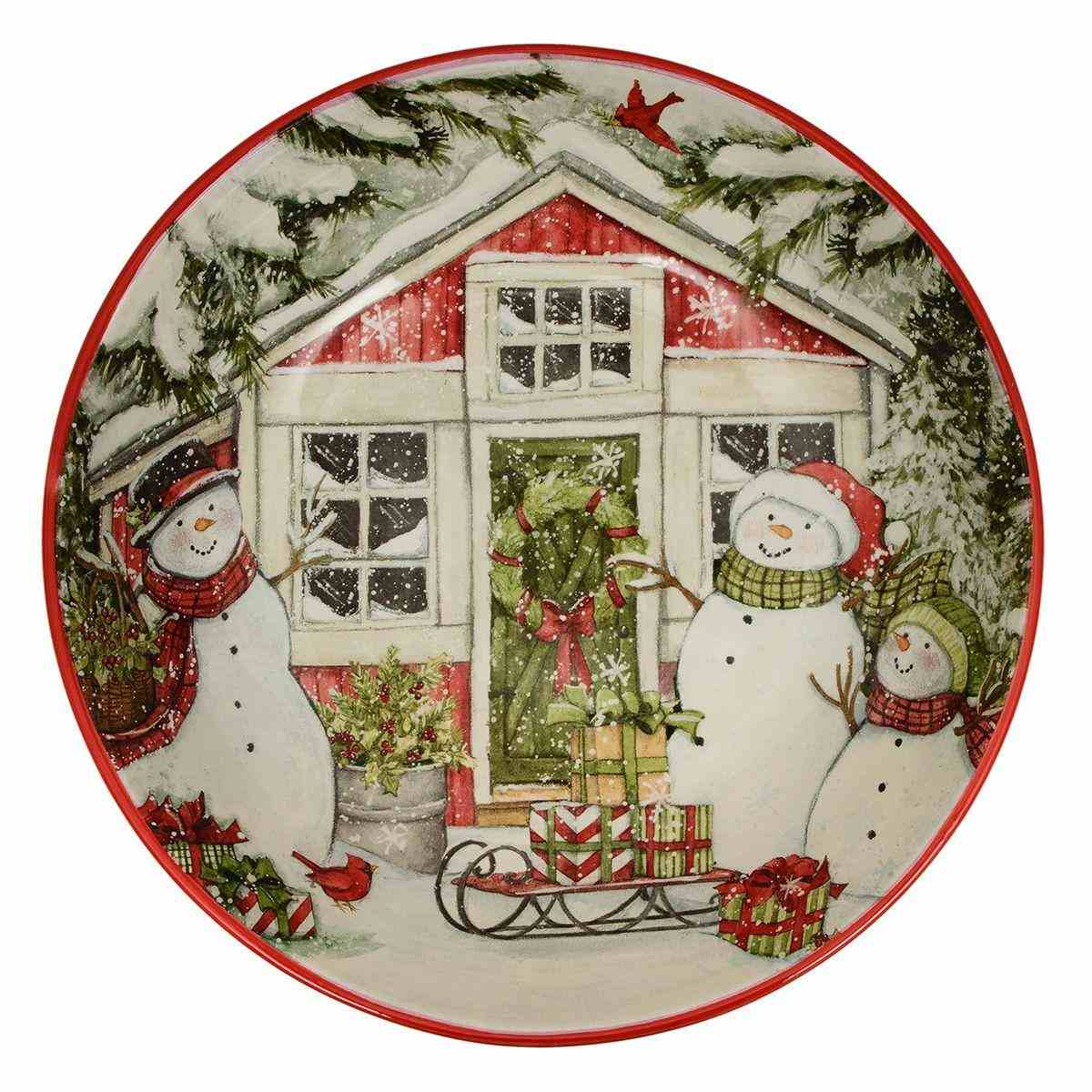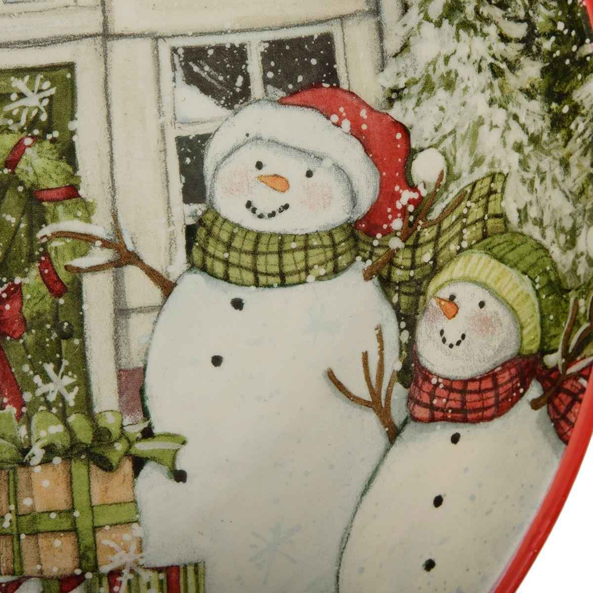 Салатник виготовлений із міцної кераміки, покритої блискучою глазур’ю, що захищає поверхню від подряпин і тьмяніння. Яскравий зимовий сюжет із веселими сніговиками створений американською художницею Сюзанною Вінгет. Він миттєво додає святкового настрою та затишку вашому столу. Виріб придатний для миття в посудомийній машині. Не рекомендується чистити абразивними засобами. Такий салатник стане теплим акцентом сервірування і чудовим подарунком для поціновувачів різдвяного декору.