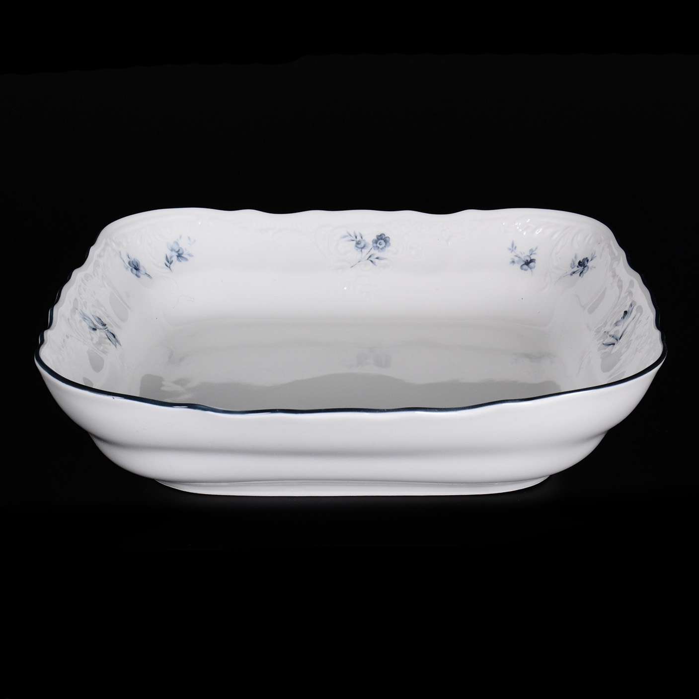 Салатник порцеляновий білий квадратний із синім візерунком і окантовкою Thun Bernadotte Квітневе Цвітіння 25 см