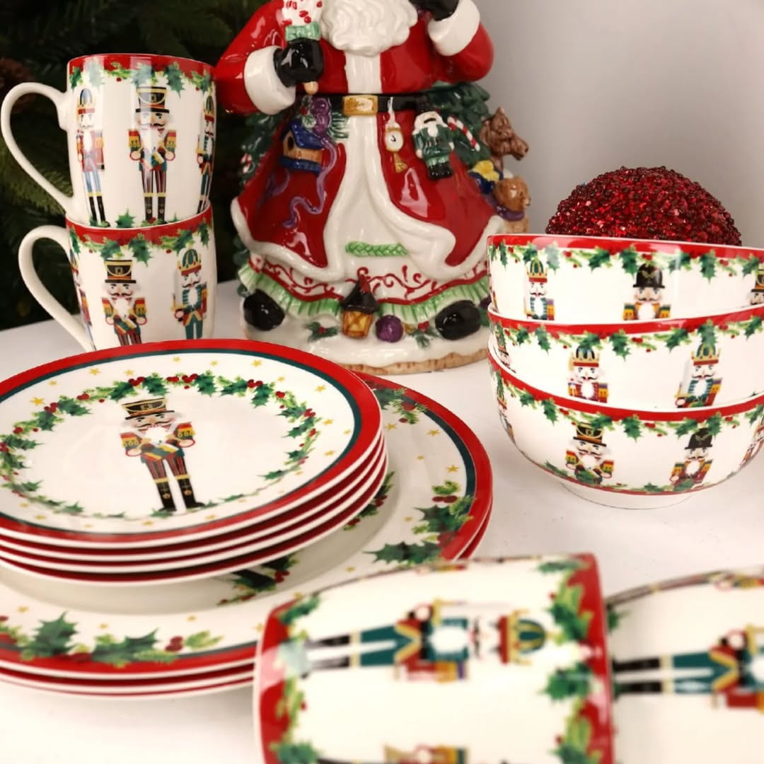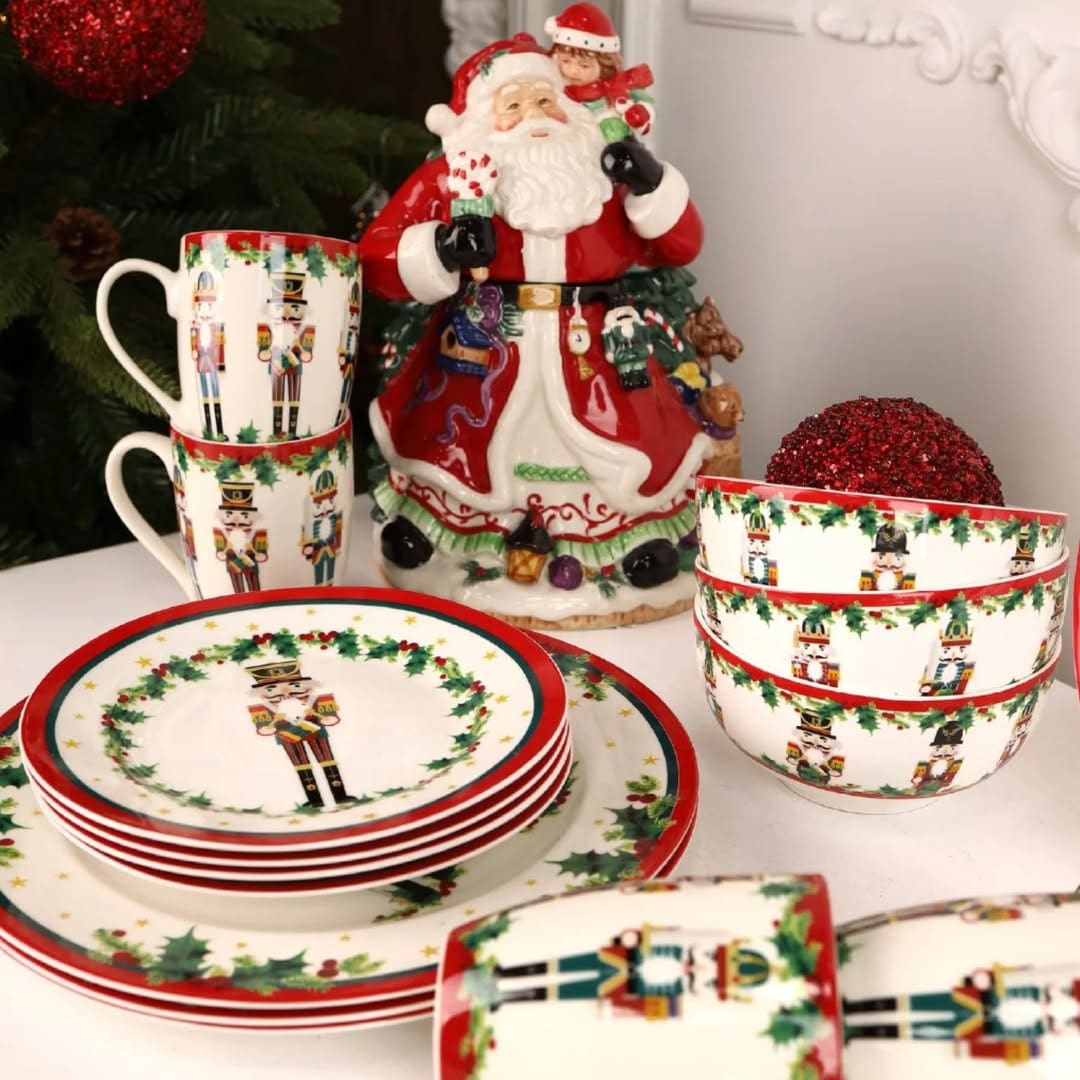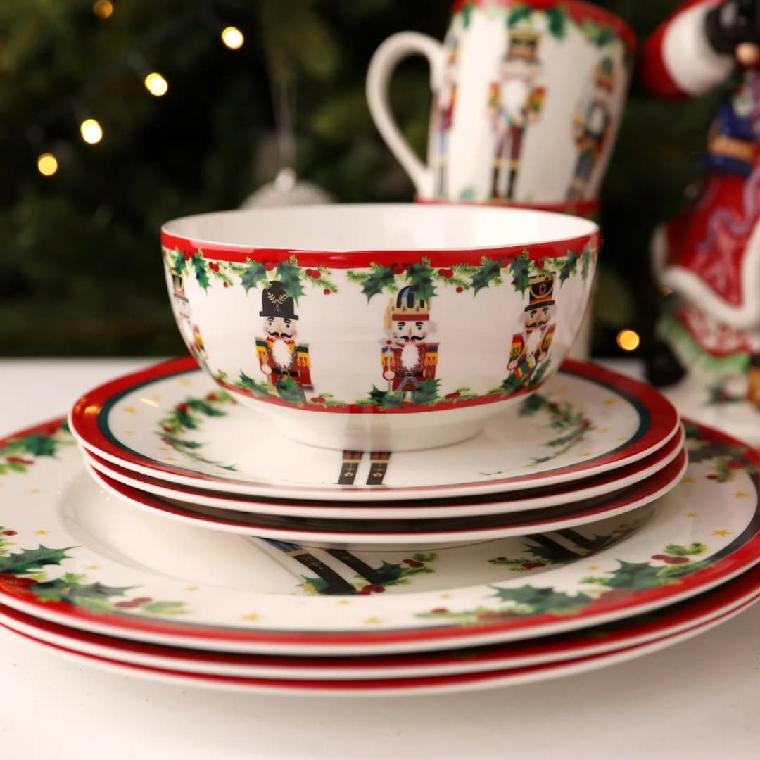 Колекція фарфорового посуду «Лускунчик» — це справжня різдвяна казка, втілена в сервіровці вашого столу. Яскраві зображення Лускунчика, обрамлені святковими вінками з падуба та червоних ягід, створюють атмосферу затишку й нагадують про улюблені зимові традиції. Такий посуд не лише прикрашає святковий стіл, а й наповнює його особливим настроєм, даруючи радість усій родині.