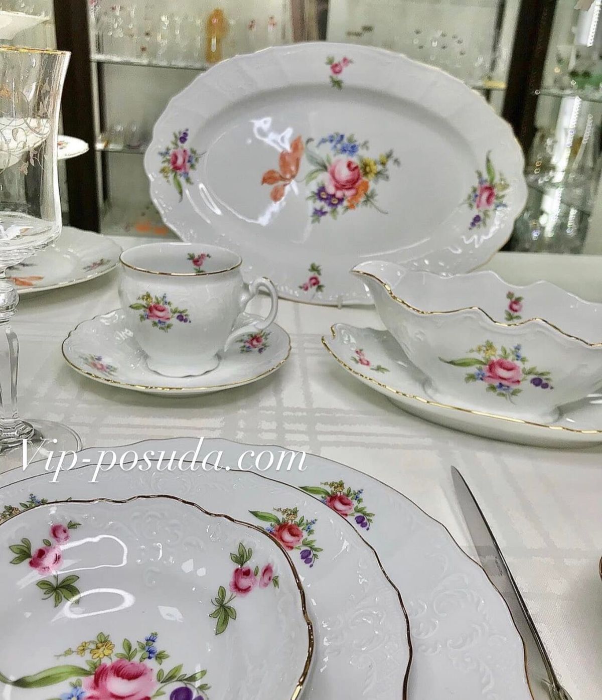 Блюдо для сервировки и хлеба фарфор Чехия "Мейсенский букет"