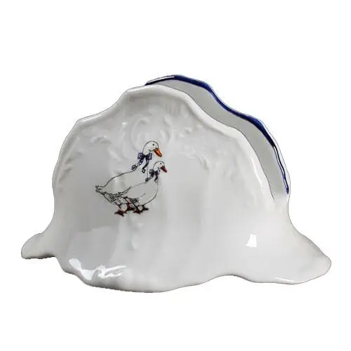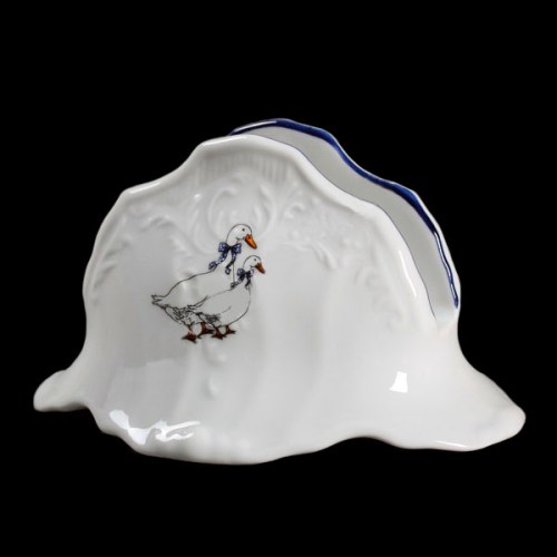 Салфетница фарфоровая белая с рисунком Bernadotte Гуси с синей окантовкой