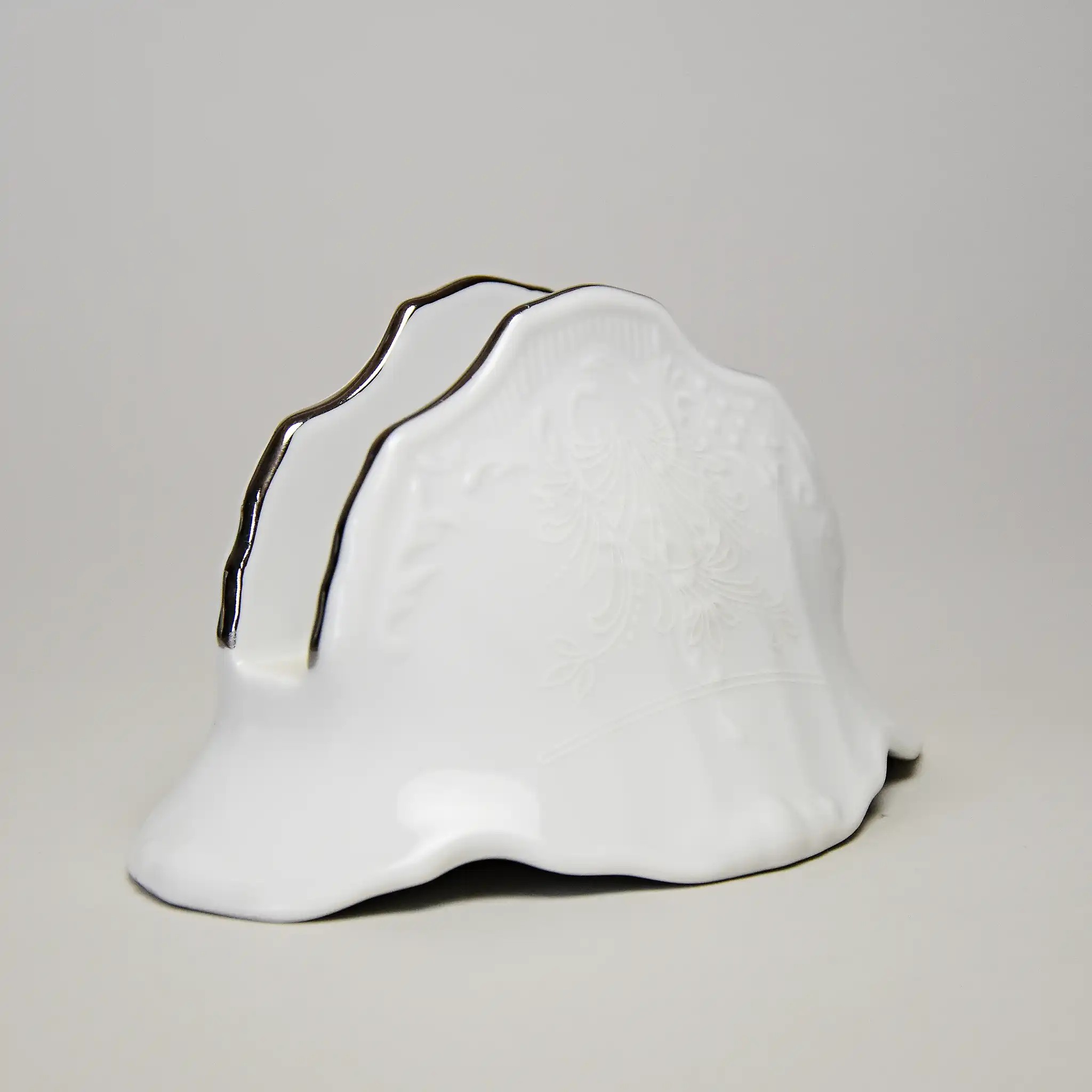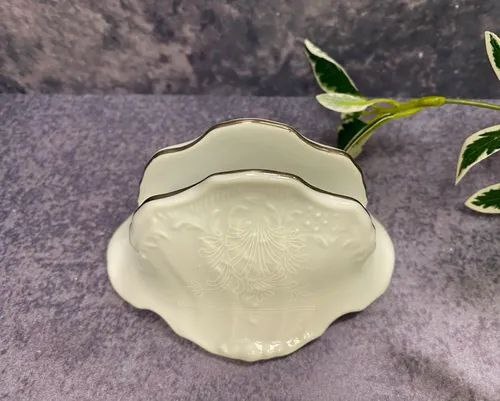 Фарфоровая салфетница Bernadotte Thun "Невеста" — это воплощение аристократической сдержанности и тонкого вкуса. Изящная форма с мягкими линиями, платиновый кант и утончённый рельефный узор превращают функциональный предмет в настоящее украшение стола. Это именно тот случай, когда даже самая простая деталь сервировки говорит о вашем стиле.