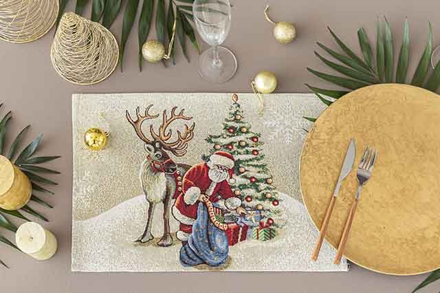 Гобеленова серветка Village 35×50 см — це не лише прикраса, а й справжній помічник у створенні святкового затишку. Яскравий сюжет із Санта-Клаусом, ялинкою та оленем стане центральним акцентом на вашому столі й подарує атмосферу радості. Вона ідеально підходить як декоративний елемент, але водночас має й практичне призначення.