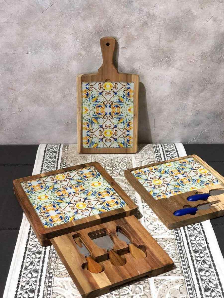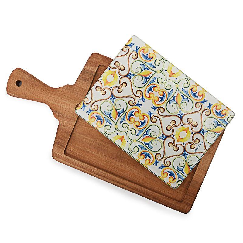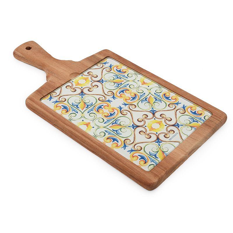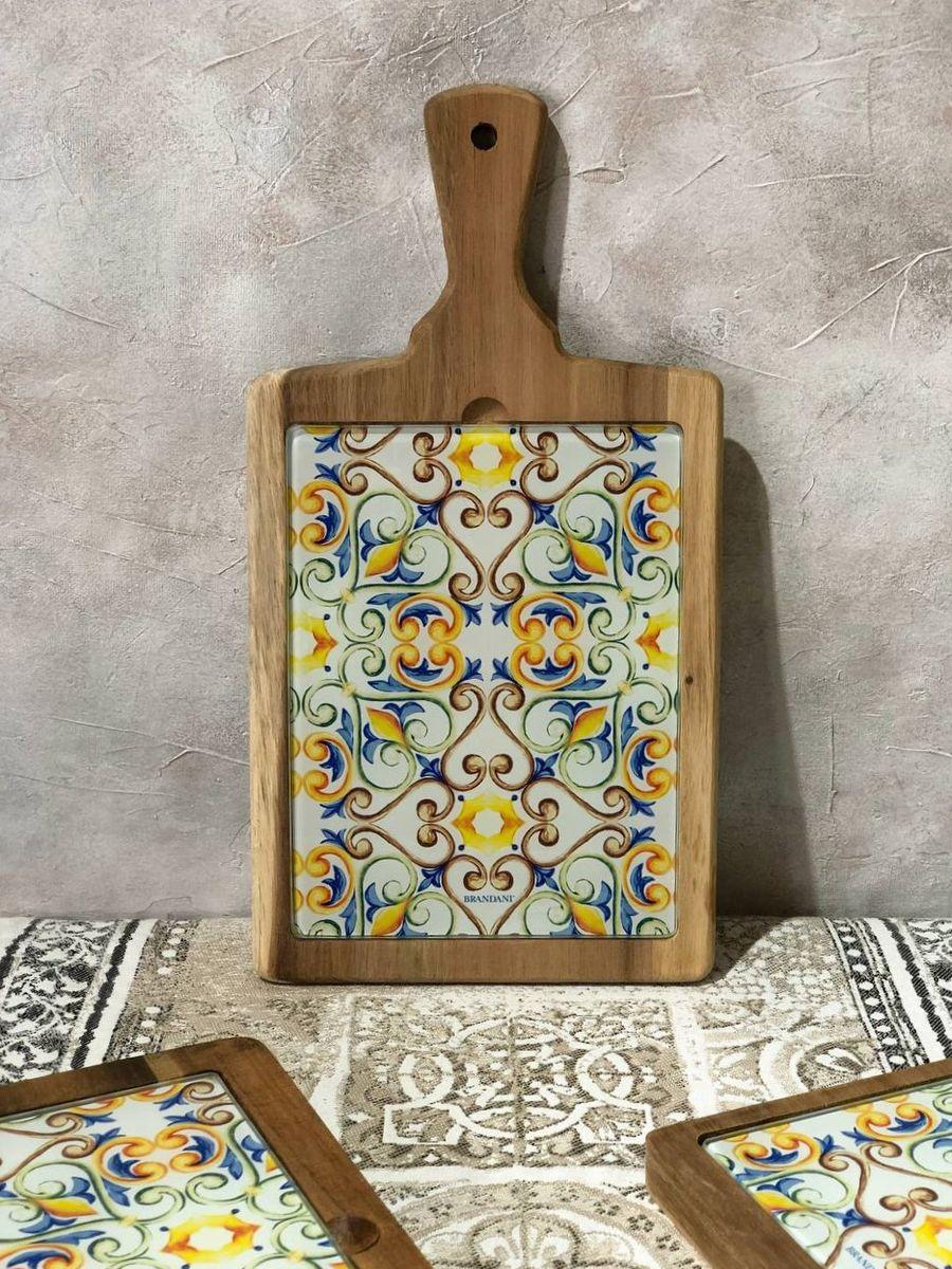 Цей виріб — не звичайне кухонне приладдя, а прикраса столу, що руйнує стереотип про те, що кухонні аксесуари не можуть бути гарним подарунком. Такий посуд сьогодні актуальний не стільки на кухні, скільки у сервіруваннях — для оригінальної подачі сирних нарізок із соусами, канапе, овочів, фруктів та інших холодних закусок. Візантійський орнамент виглядає як картина в елегантному обрамленні з відполірованого дерева. Тверда акація є одним із найпрактичніших видів деревини, який не вбирає вологу та не темніє з часом.