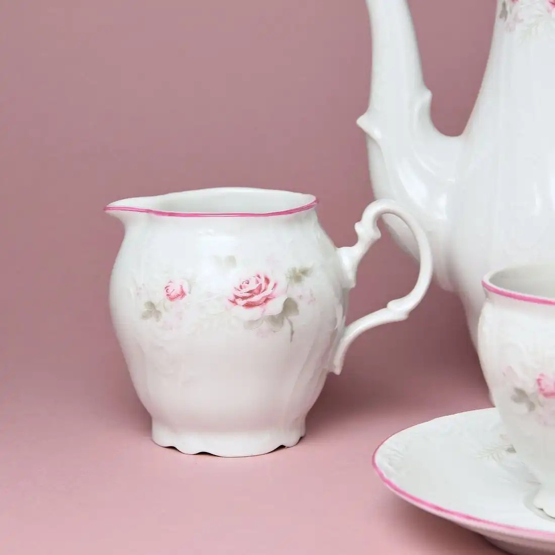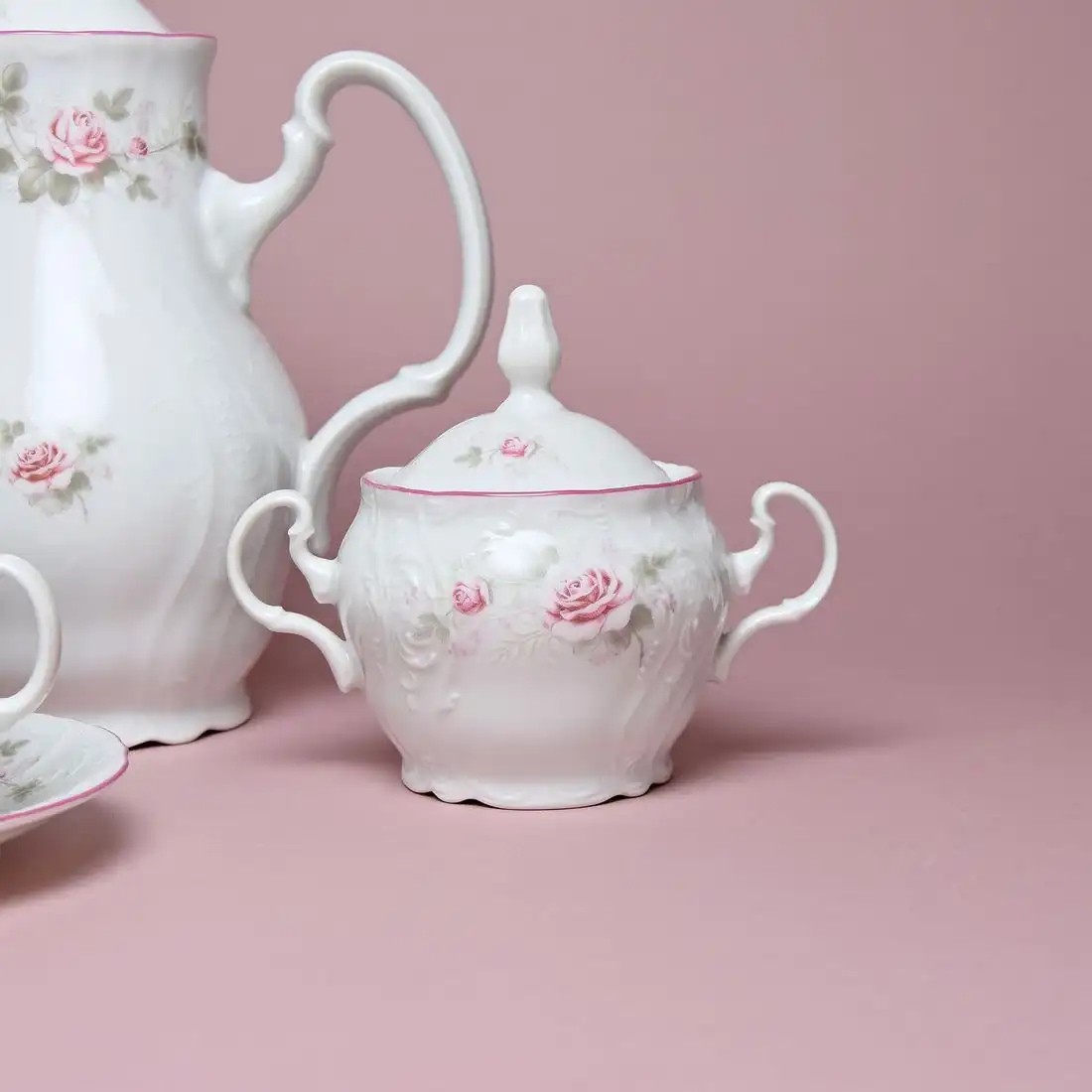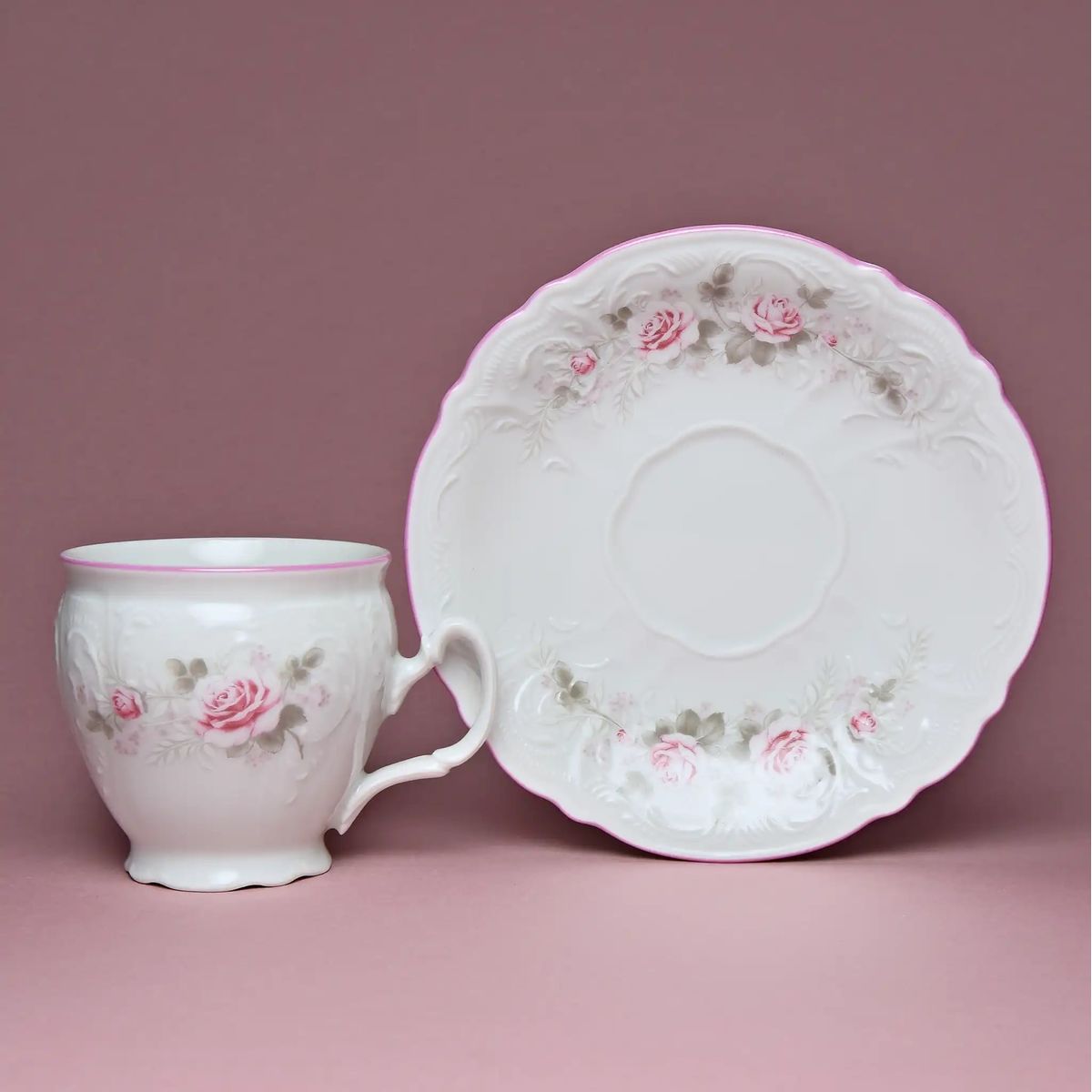 Сервиз чайный фарфоровый на 6 персон Bernadotte Бледные розы-розовый кант