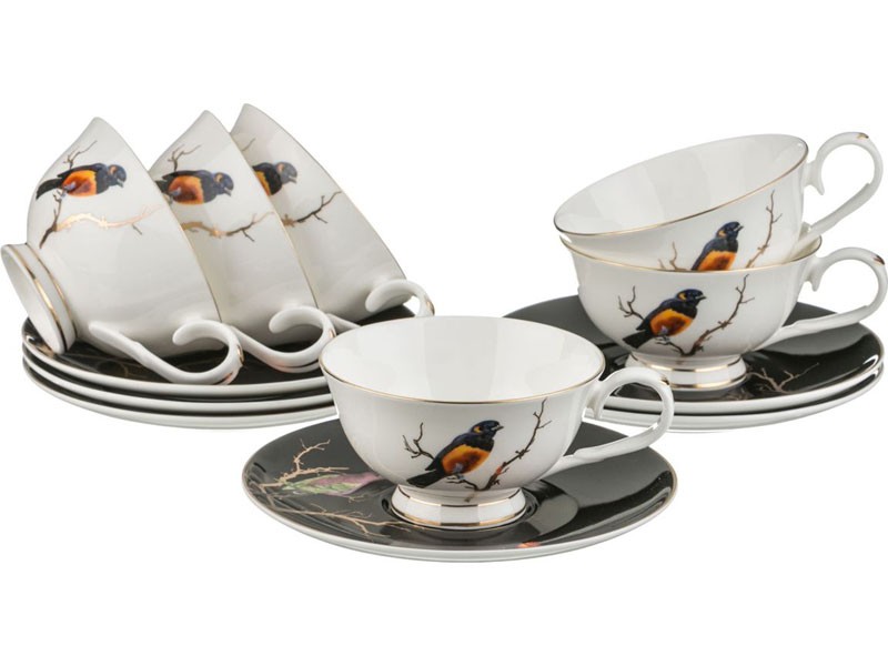 Сервиз чайный фарфоровый "Птица" 12 предметов на 6 персон