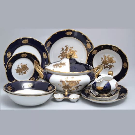 Сервиз чешский столовый "Розы кобальт" из 25 предметов на 6 персон