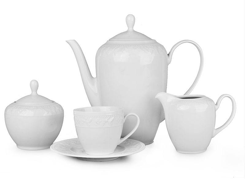Кожен елемент виготовлений із високоякісної турецької порцеляни, яка славиться міцністю та зносостійкістю. Витончені лінії та збалансовані пропорції створюють гармонійний силует, а зручні ручки та носики забезпечують комфорт у користуванні. Завдяки універсальності набір підходить як для щоденного сімейного кавопиття, так і для прийому гостей.