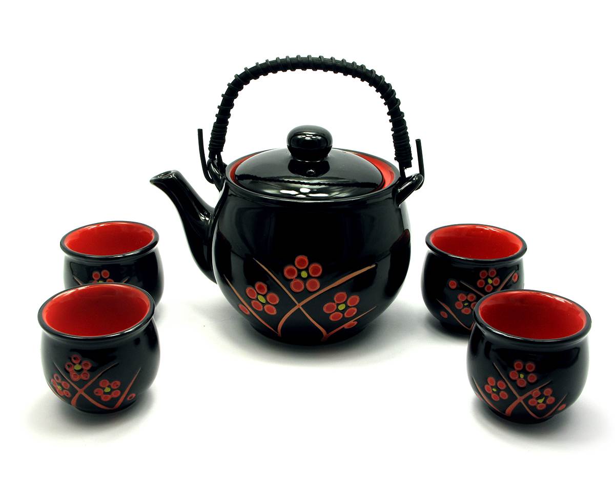 Сервиз керамический Черный дракон 4 пиалы 50 мл+чайник 700 мл