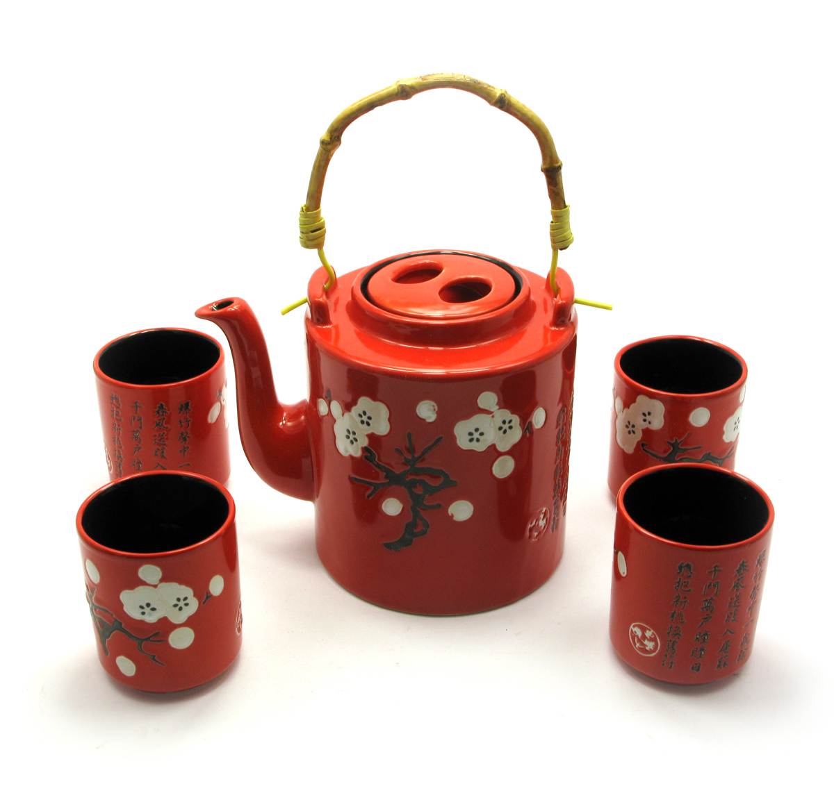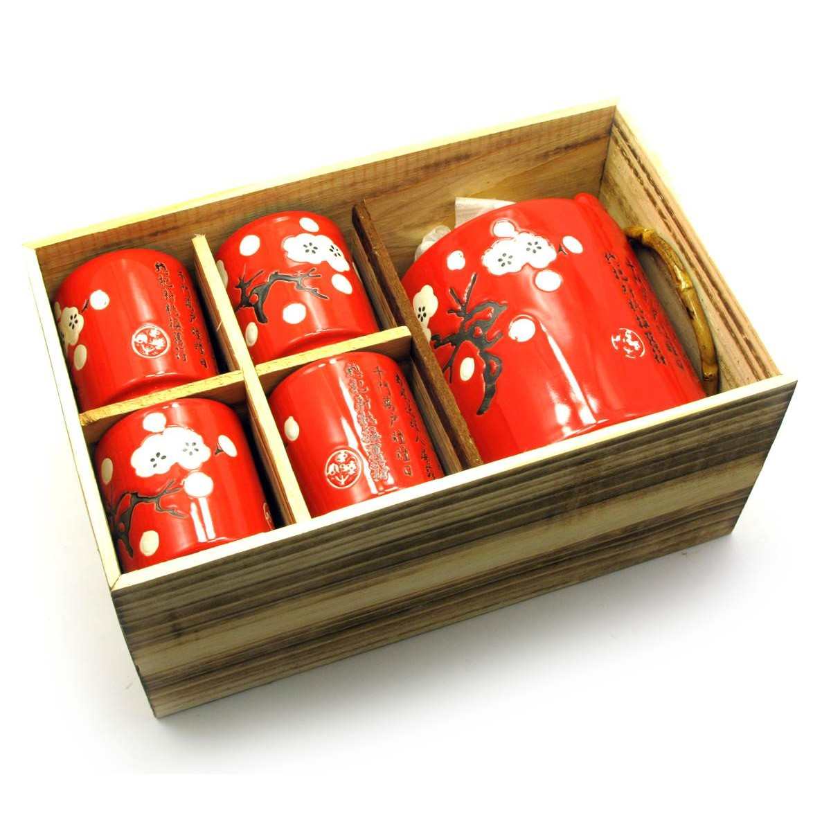 Сервіз керамічний червоний чайник та 4 піали