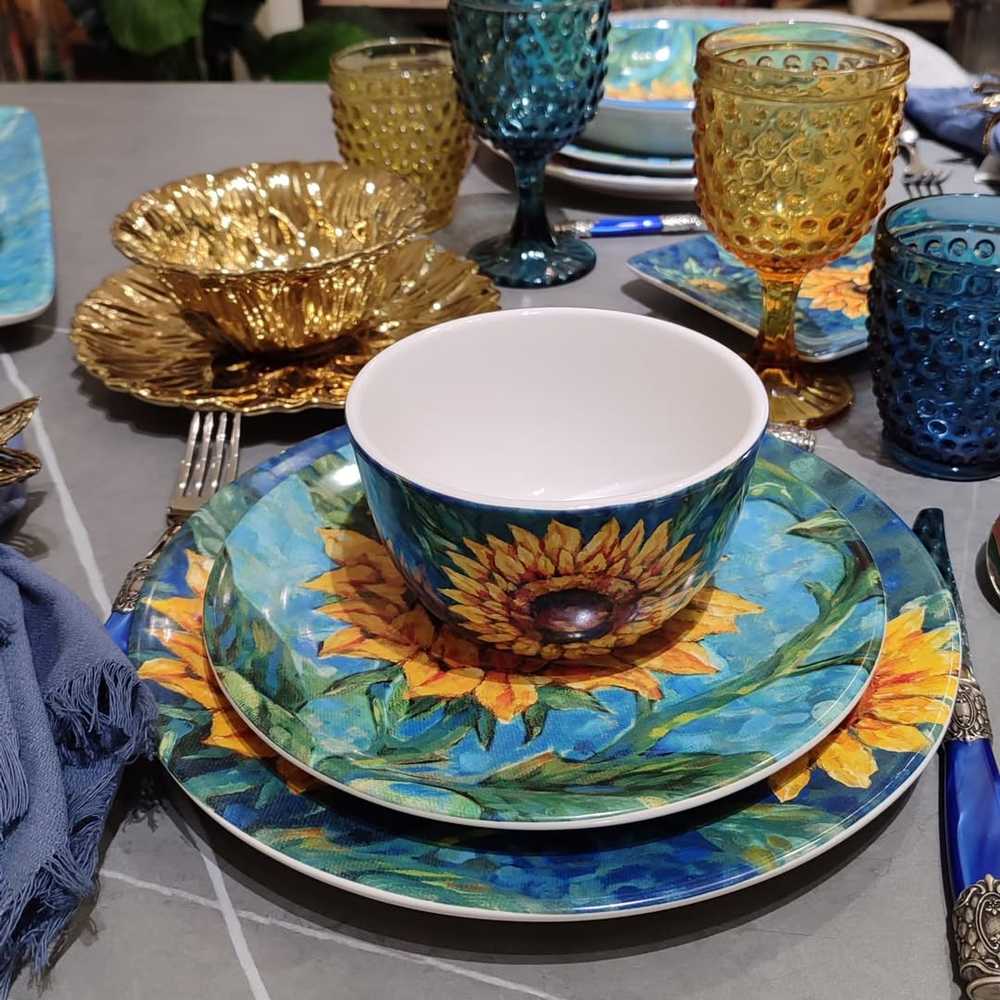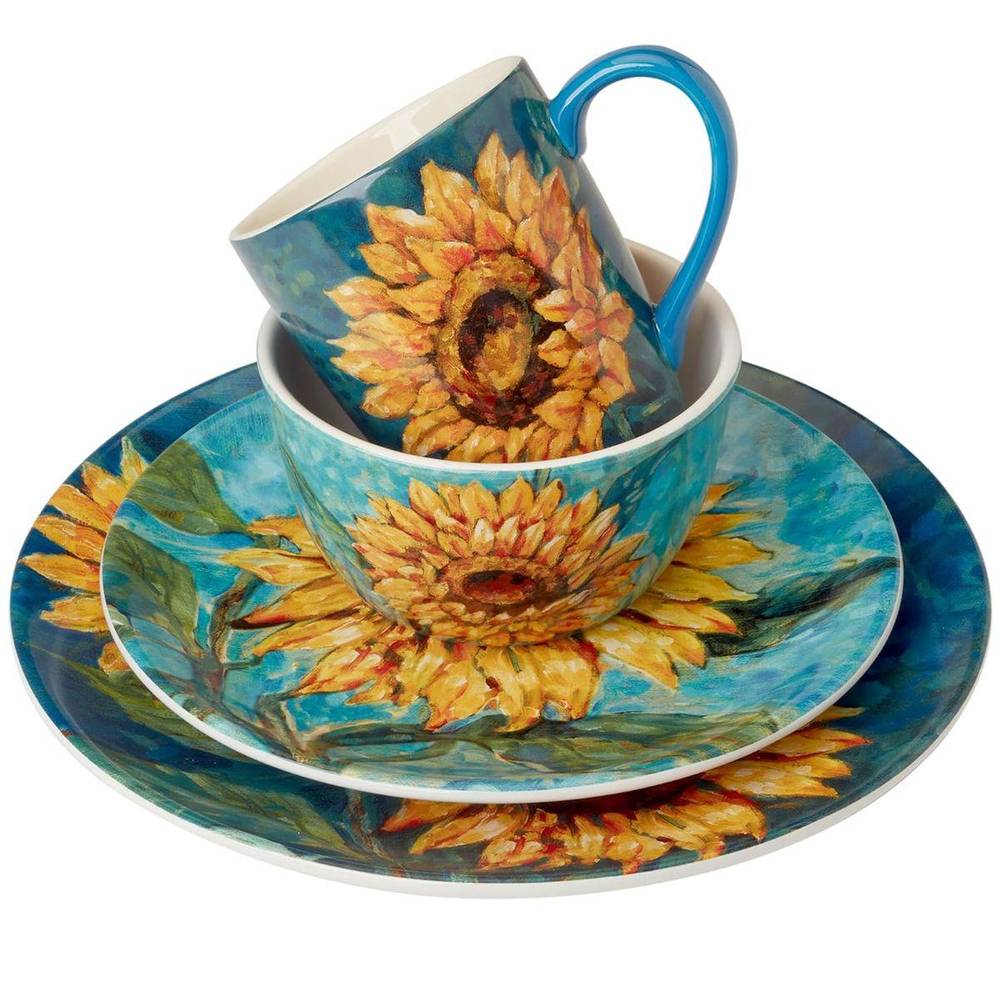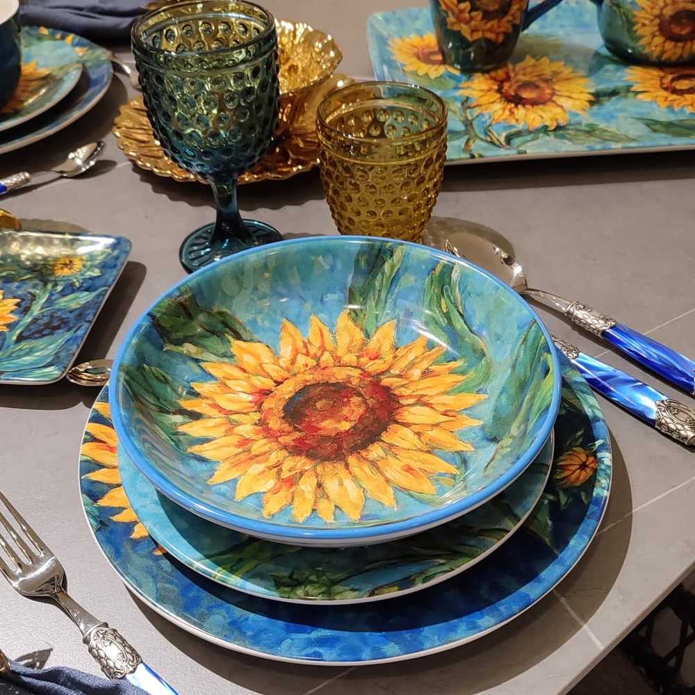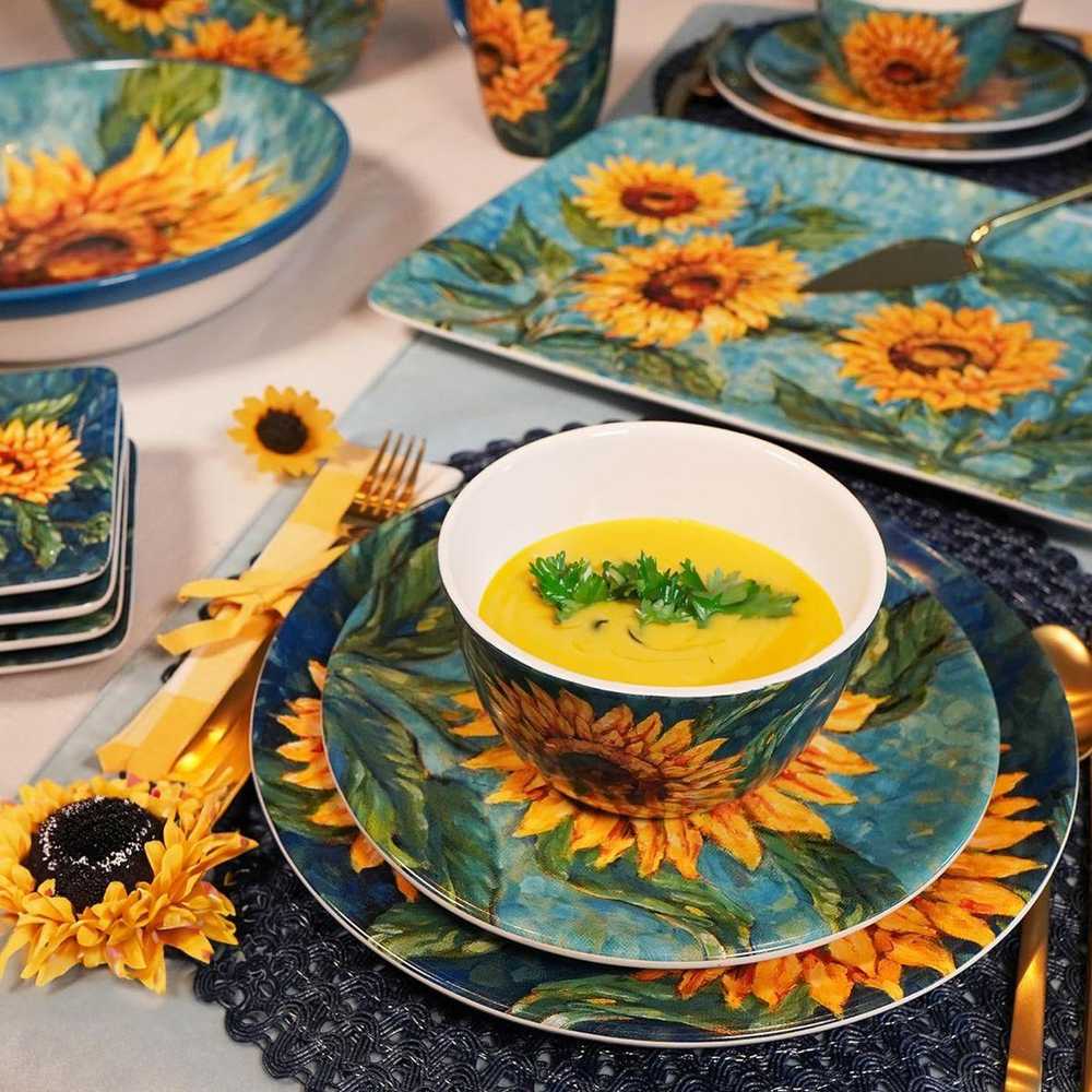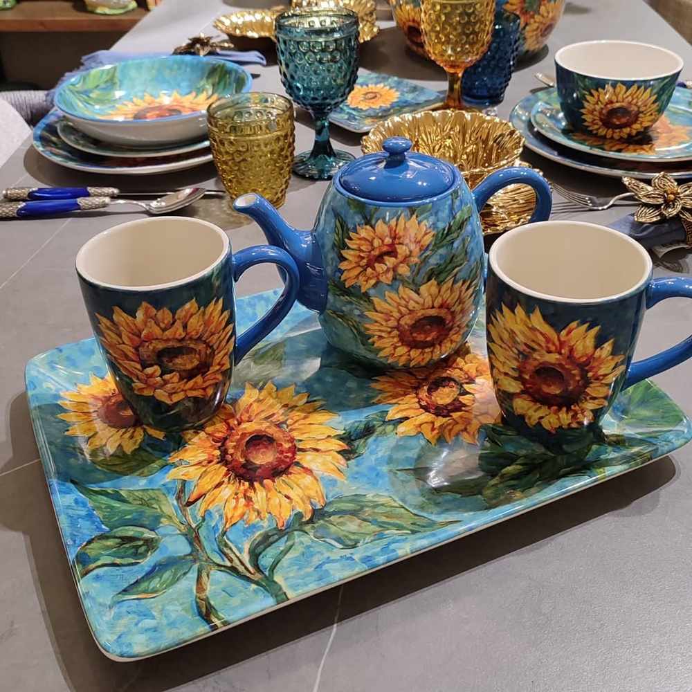 Сервиз «Золотистые подсолнухи» от Certified International — это настоящий взрыв цвета и жизненной энергии на вашем столе. Яркие жёлтые цветы на насыщенно-синем фоне создают эффект солнечного света даже в пасмурный день. Каждая деталь выполнена из прочной керамики с глянцевым покрытием, что делает сервиз не только красивым, но и практичным для ежедневного использования. Этот набор на 4 персоны станет главным украшением вашей кухни и создаст атмосферу уюта, радости и гостеприимства. Подарите себе настроение лета — каждый день!