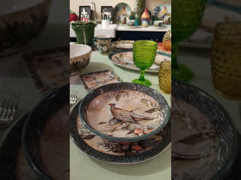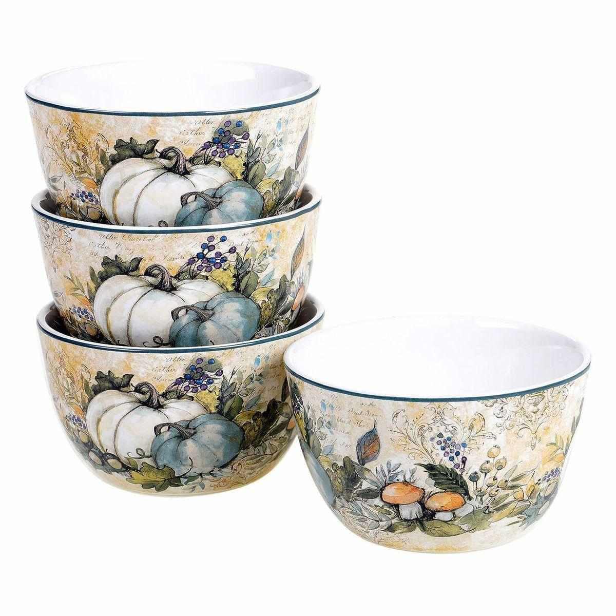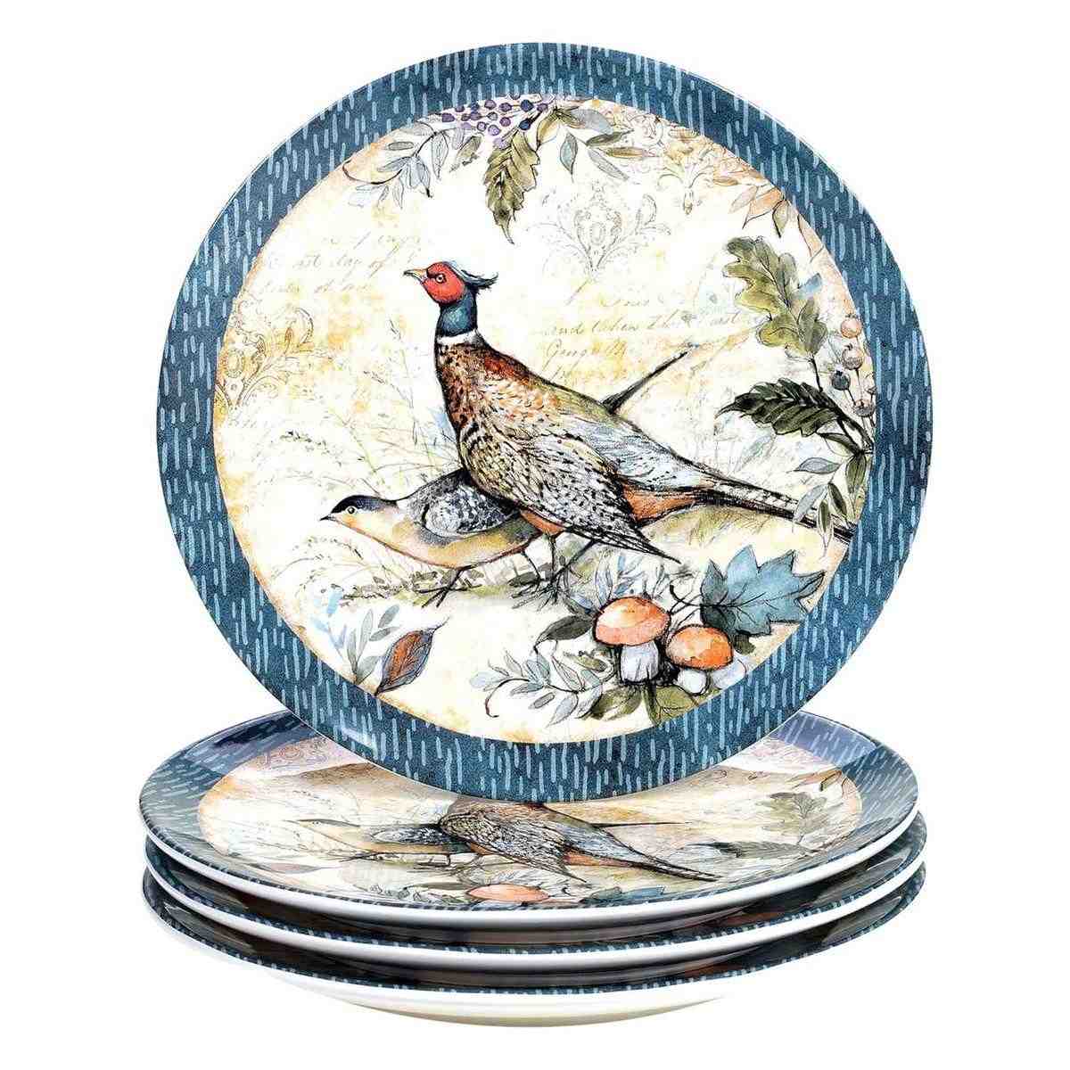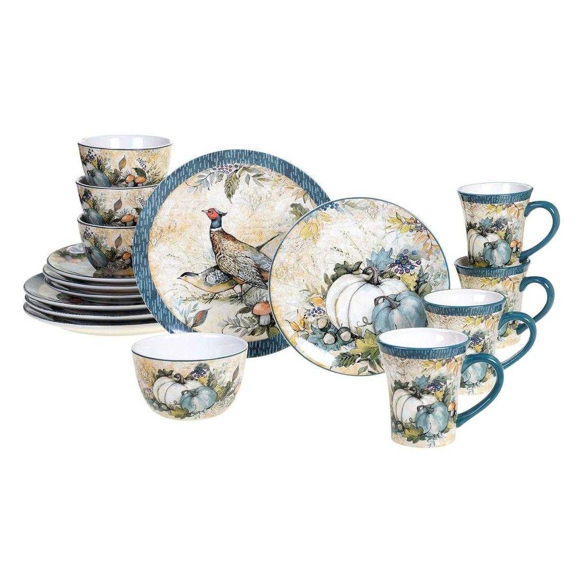 Колекція «Щедрий урожай» — це не просто сервіз, а справжня художня експозиція, де кожна деталь наповнена осіннім затишком. Тут поєднуються міцна, якісна кераміка та витончений живопис американської художниці Сюзан Уінгет. У наборі представлені піали, чашки та тарілки з атмосферними натюрмортами з гарбузів і осіннього листя, а також обідні тарілки, прикрашені витонченими композиціями із фазанами.
