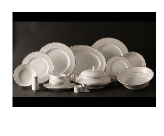 Сервіз столовий DPL складається з 74 предметів та розрахований на 12 персон. Посуд у наборі виготовлений з фарфору. Порцеляна абсолютно гладка і не пориста, не вбирає запахи і не змінює свій колір. Фарфор вищої якості фабричного виробництва, зроблений за унікальними на сьогоднішній день технологіями. Сервіз буде виглядати стильно і сучасно на будь-якому столі, чи то святковий, чи повсякденний.