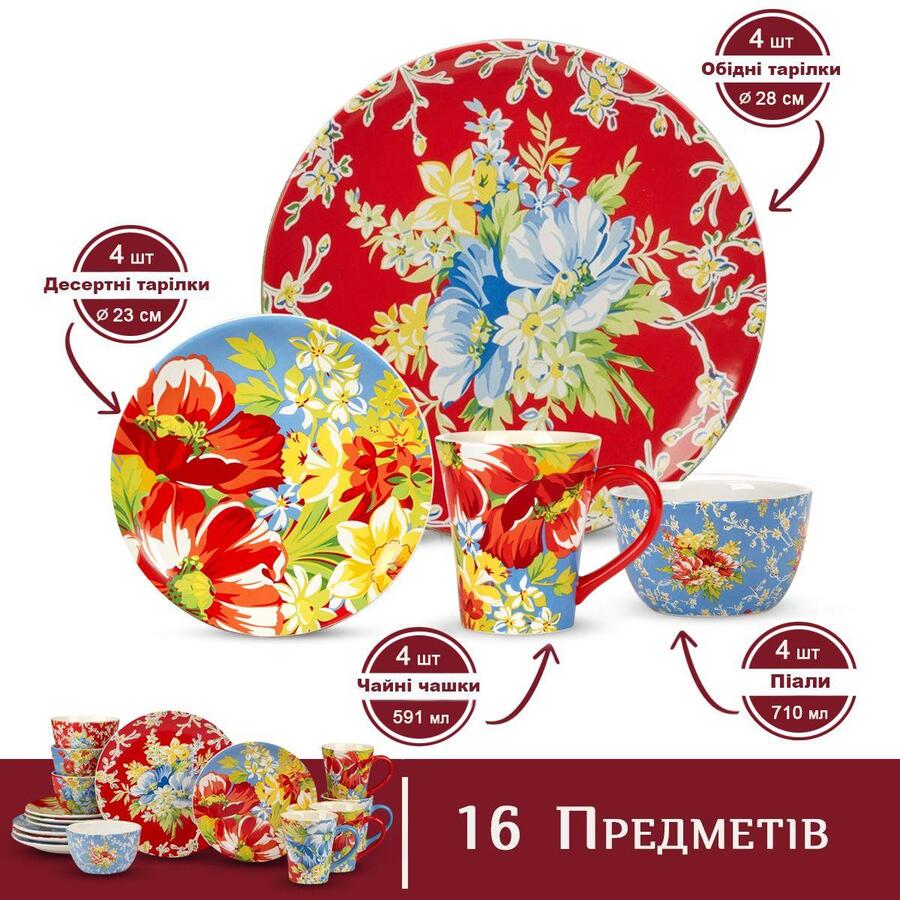 Сервиз керамический разноцветный из 16 предметов «Феерия Цветов» от Certified International - это сочетание элегантности, яркого дизайна и практичности. Цветочный орнамент с насыщенными красными, голубыми и желтыми оттенками добавляет столу изысканности и создает атмосферу тепла и радости.