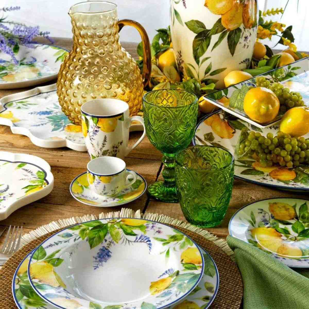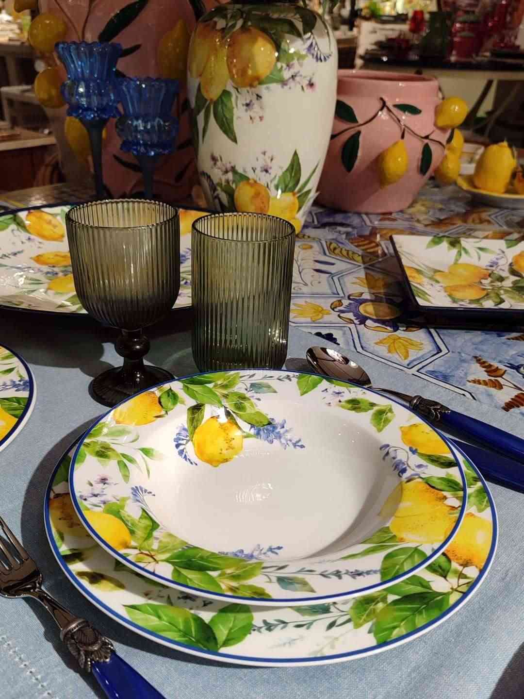 Столовый сервиз Soraya Maison — это воплощение солнечного настроения и итальянского изящества. Нежный фарфор украшен живописными лимонами и зеленью, создающими атмосферу свежести и уюта на каждом столе. В набор входит 18 предметов: обеденные, десертные и суповые тарелки, идеально подобранные по форме и размеру. Каждая деталь сервиза радует глаз и превращает даже обычный обед в эстетическое удовольствие.