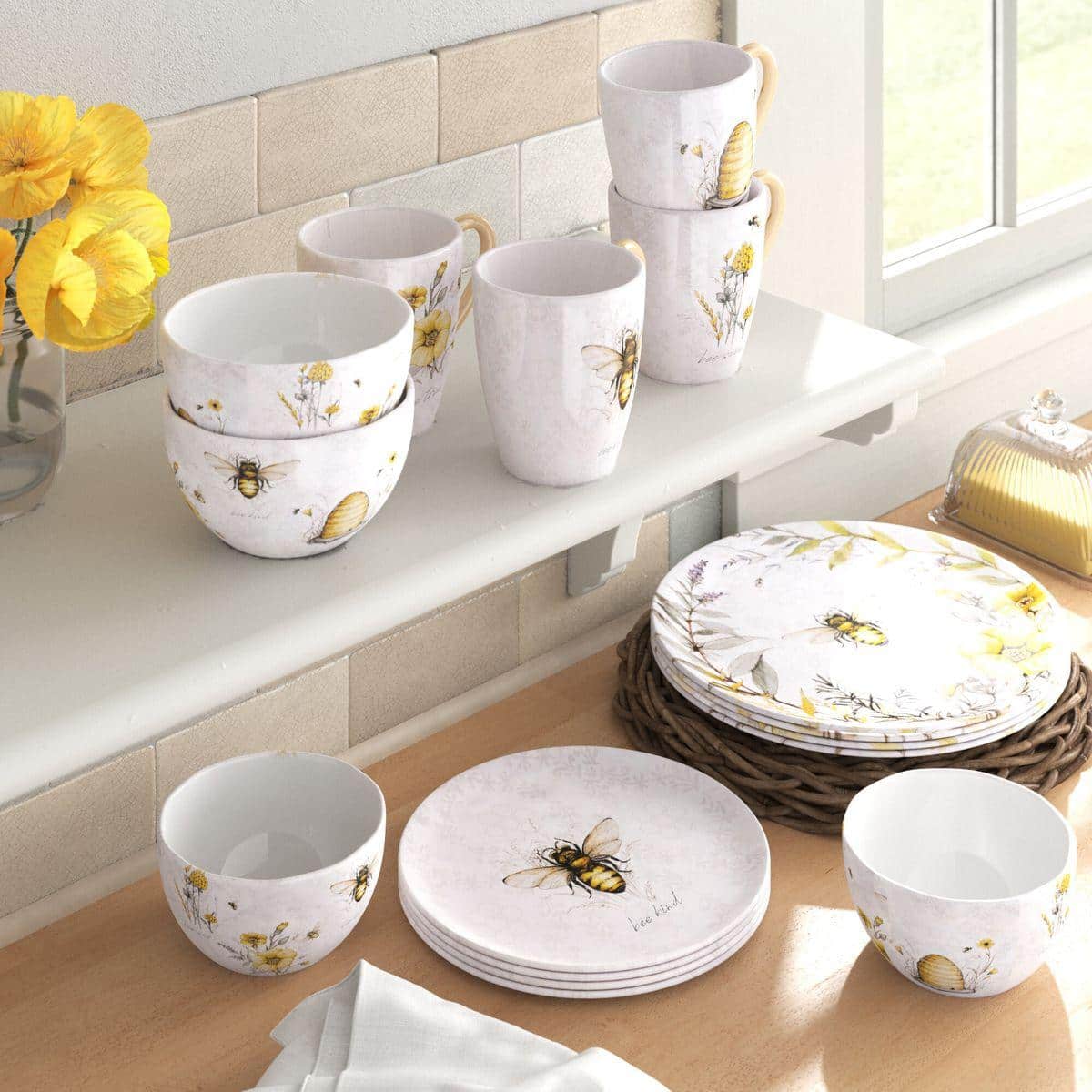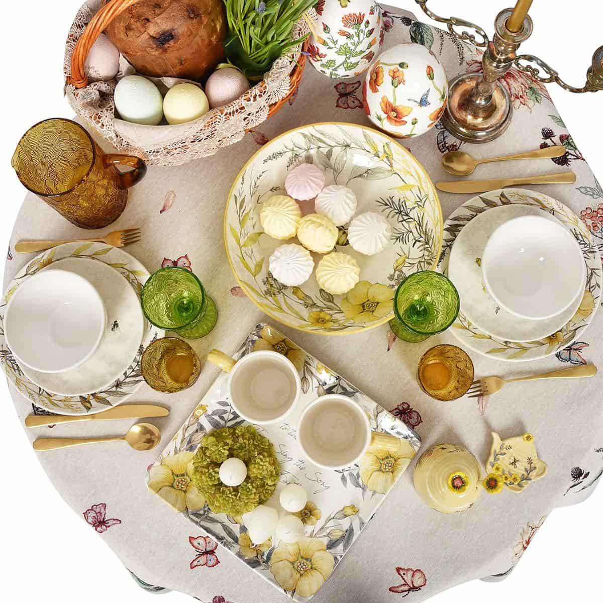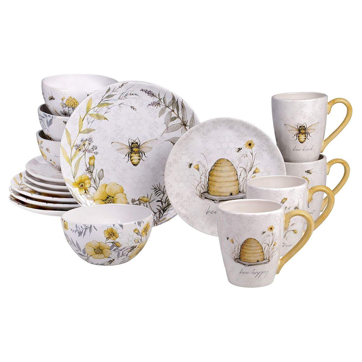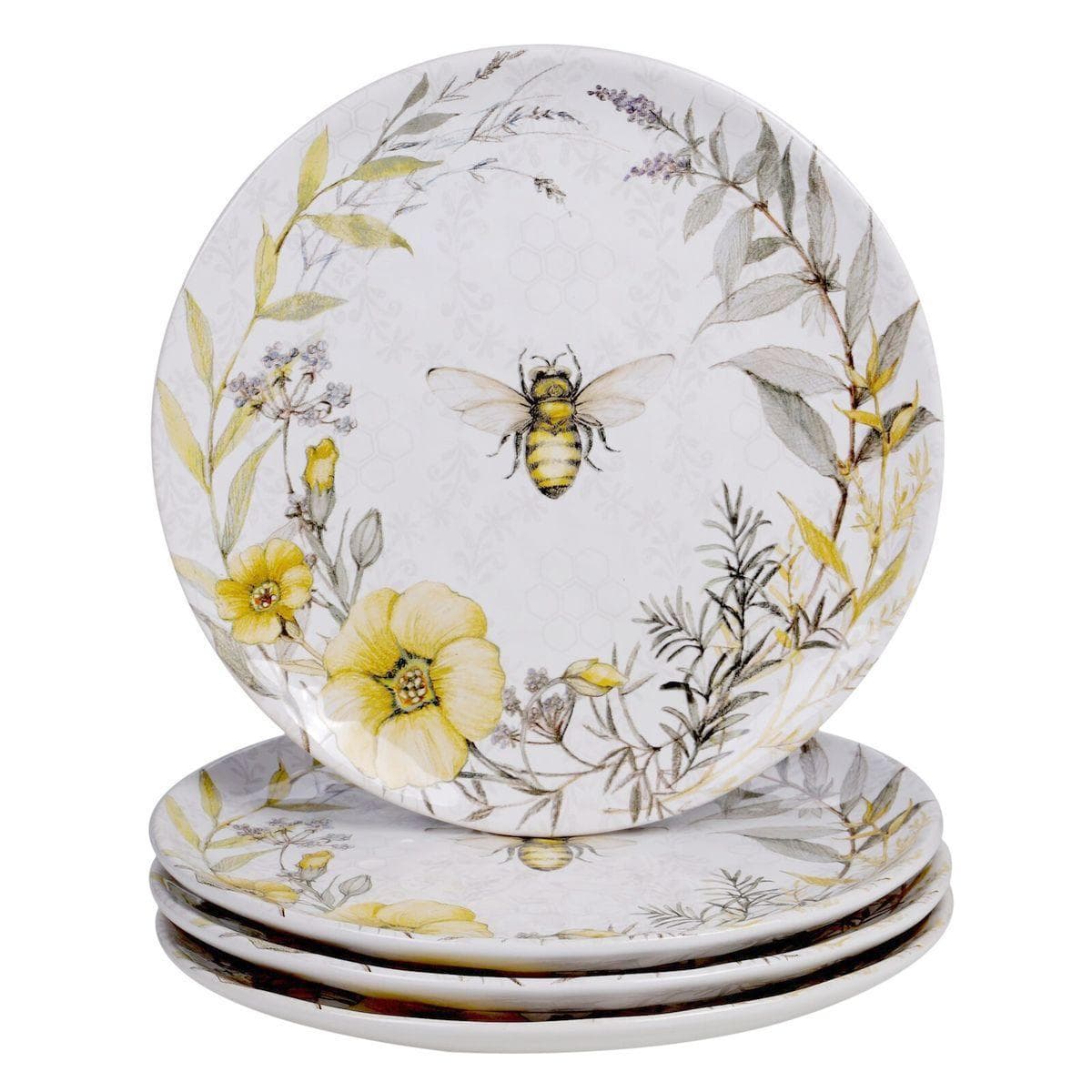 Керамическая посуда с удивительно нежным и добрым дизайном. Принтовый рисунок создан по авторскому эскизу художницы Сюзан Уингет, в котором гармонично сочетаются тонкая графика и прозрачная акварель, теплые тона и прохладные оттенки, изящные цветы и пухлые пчелки. Этот сервиз идеально комбинируется со светлой керамикой и текстилем в стиле прованс, а для более выразительной сервировки можно добавить цветное стекло.