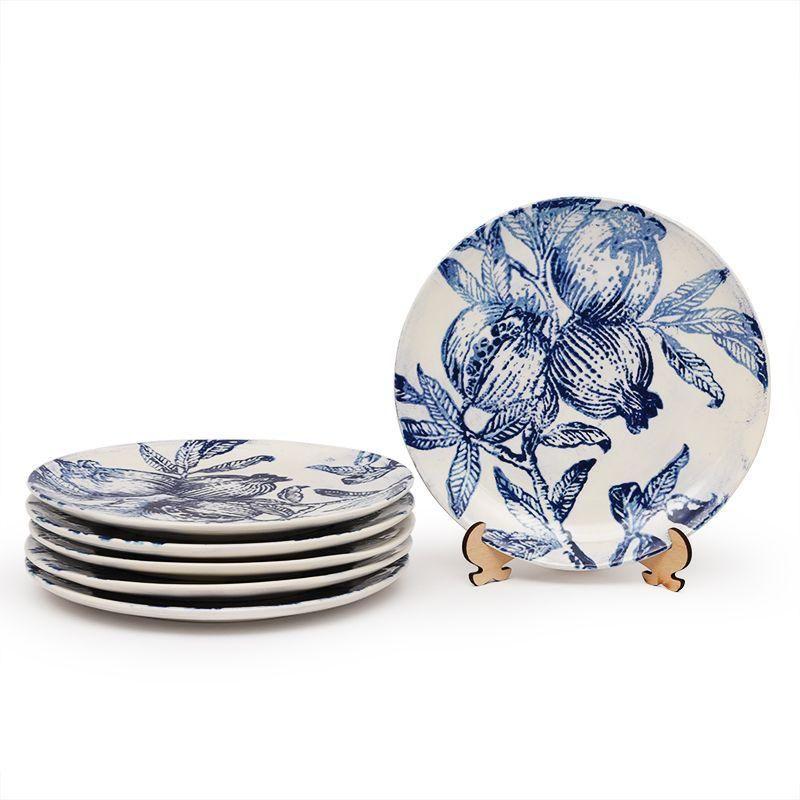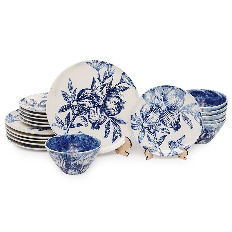 Столовий сервіз від Villa Grazia виготовлений із якісної італійської кераміки, а елегантний дизайн у вигляді синіх відбитків гранату нанесений на кожен виріб вручну методом декалькоманії.