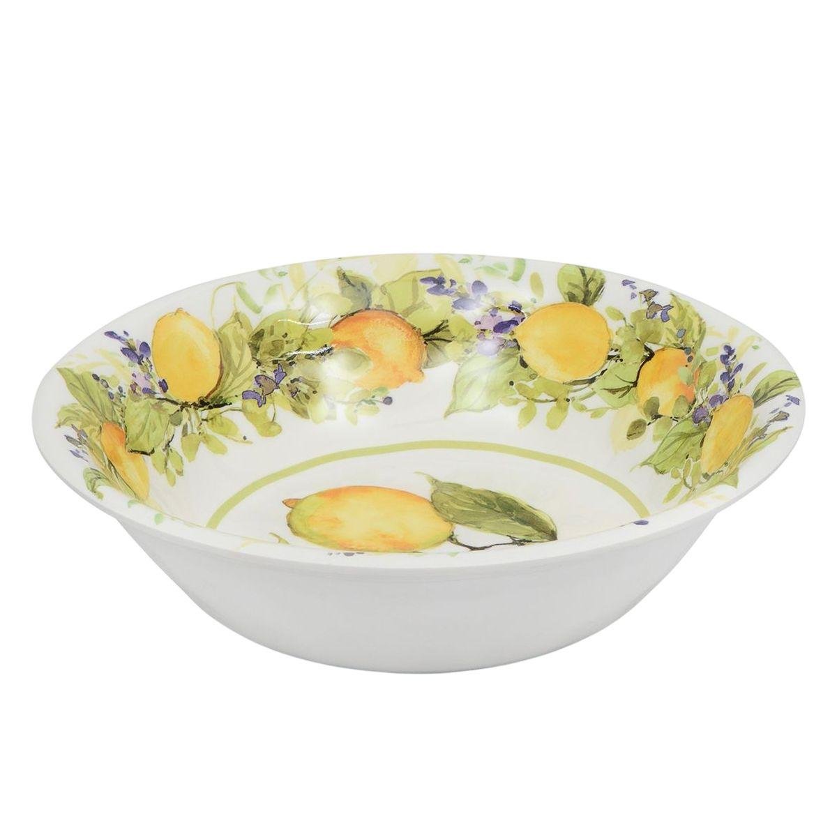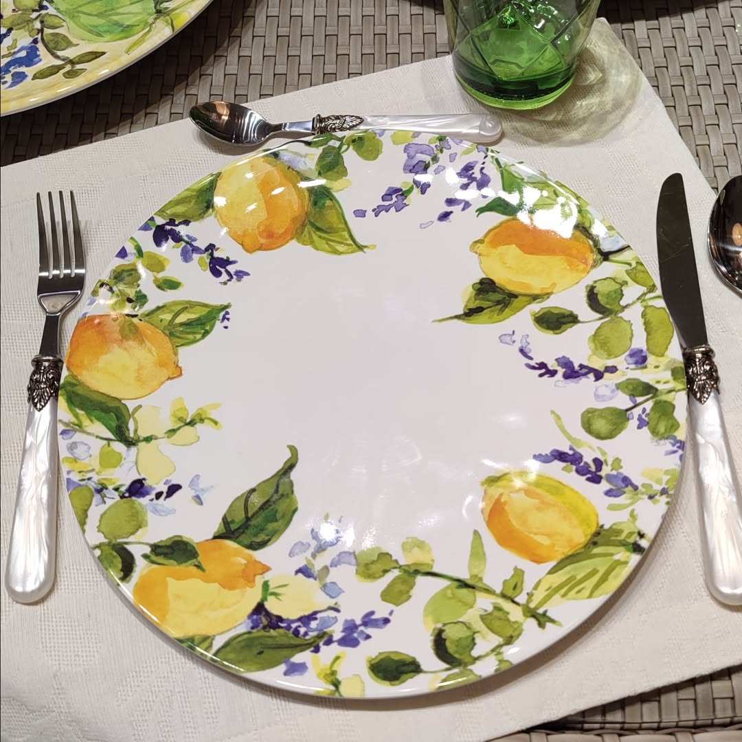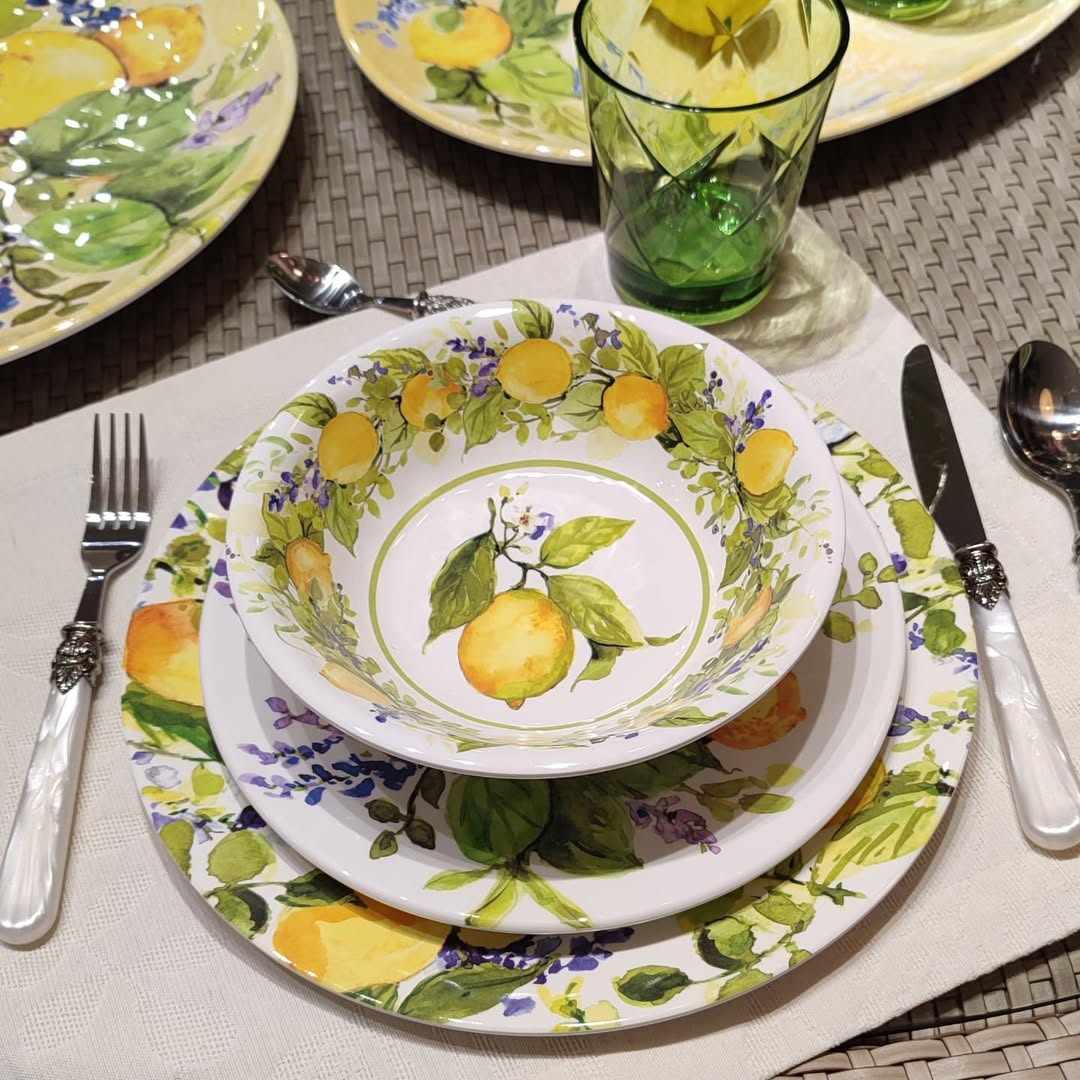 Столовый сервиз «Аромат Лимона» от Certified International рассчитан на 4 персоны и включает обеденные, десертные и суповые тарелки из прочного меламина. Яркий лимонный узор на белом фоне создаёт солнечное настроение и оживляет любую сервировку. Материал не содержит бисфенола, устойчив к ударам и идеально подходит для ежедневного использования. Такой сервиз станет ярким акцентом на столе и подарит ощущение лета в любое время года. Прекрасный выбор для тех, кто ценит красоту, комфорт и позитивную атмосферу за ужином. Тарелки допускается мыть в посудомоечной машине при температуре не выше +70°, но их нельзя использовать в духовке или микроволновой печи. Также не стоит применять абразивные средства и жёсткие губки, чтобы не повредить поверхность.