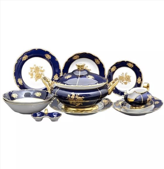 Сервіз столовий "Троянди" кобальт з 25 предметів на 6 персон