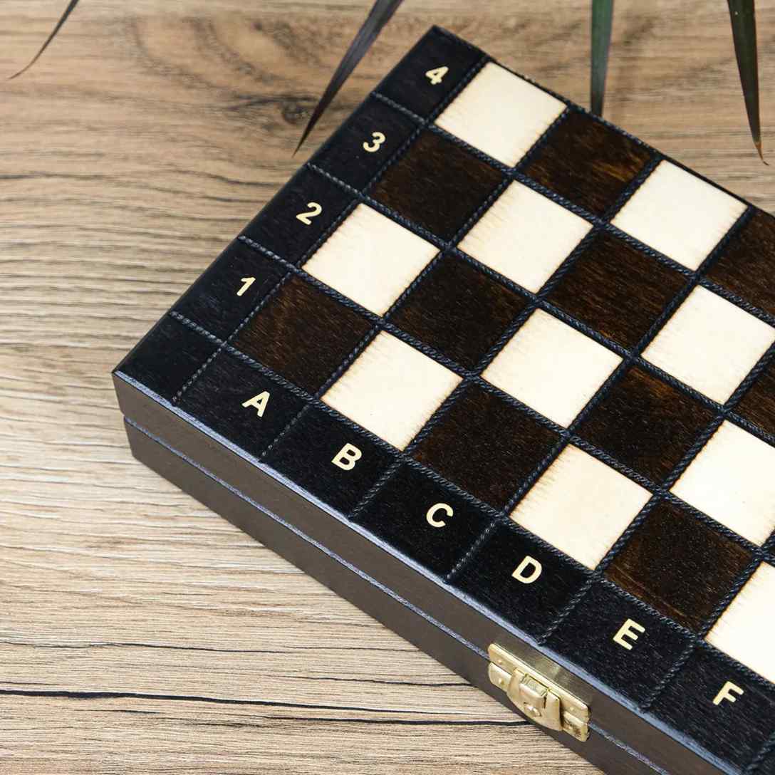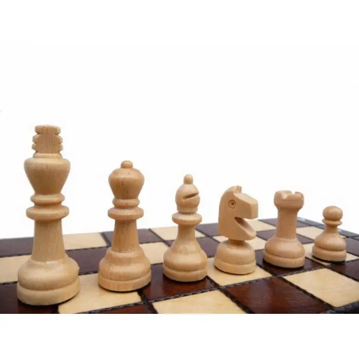 Шахматы «Школьные» — это компактный деревянный набор, идеально подходящий для обучения и первых партий. Размер в сложенном виде составляет 27×13,5×4 см, в разложенном — 27×27×2 см. Высота короля — 6 см.