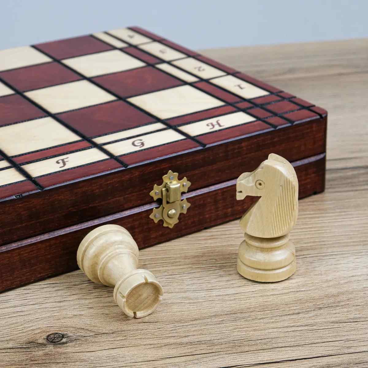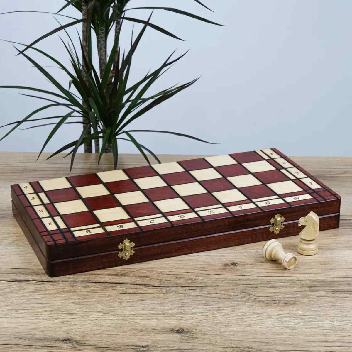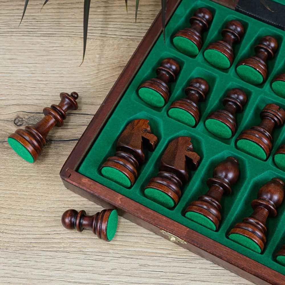 Доска и фигуры изготовлены из натурального дерева. Внутри предусмотрены специальные ячейки, где фигуры удобно размещаются и аккуратно хранятся.